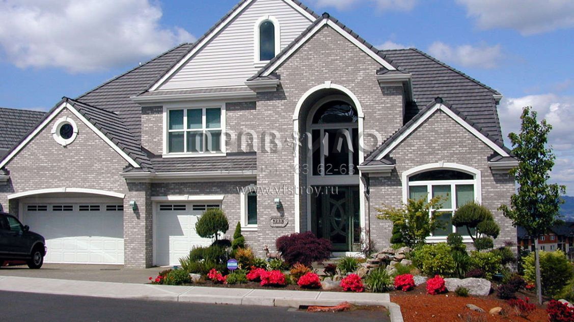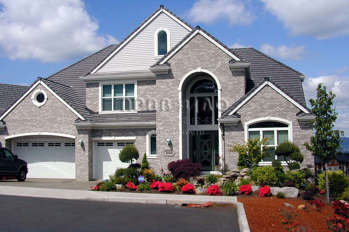 Это проект двухэтажного дома с гаражом на три и более машин жилой площадью 359 кв.м. Длина дома 18 м, ширина 19.5 м, высота 11 м. В доме шесть и более спален и четыре санузла.