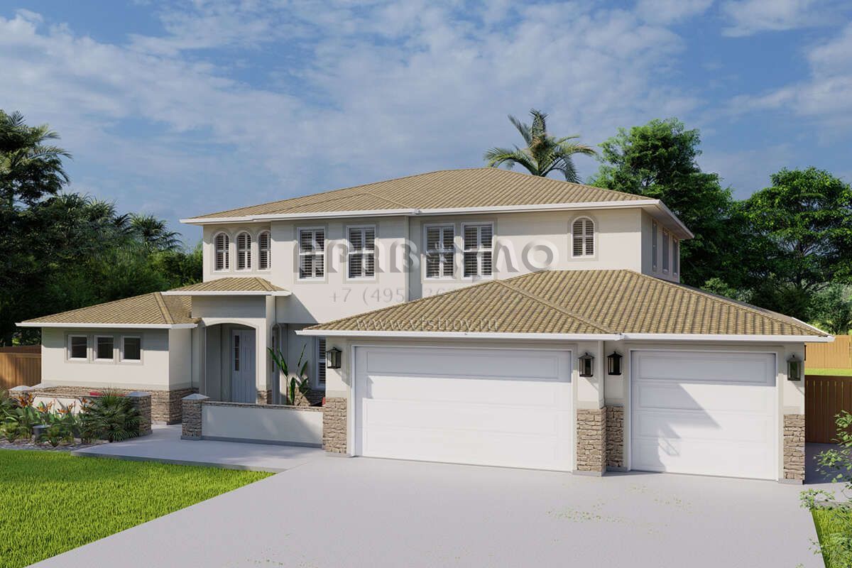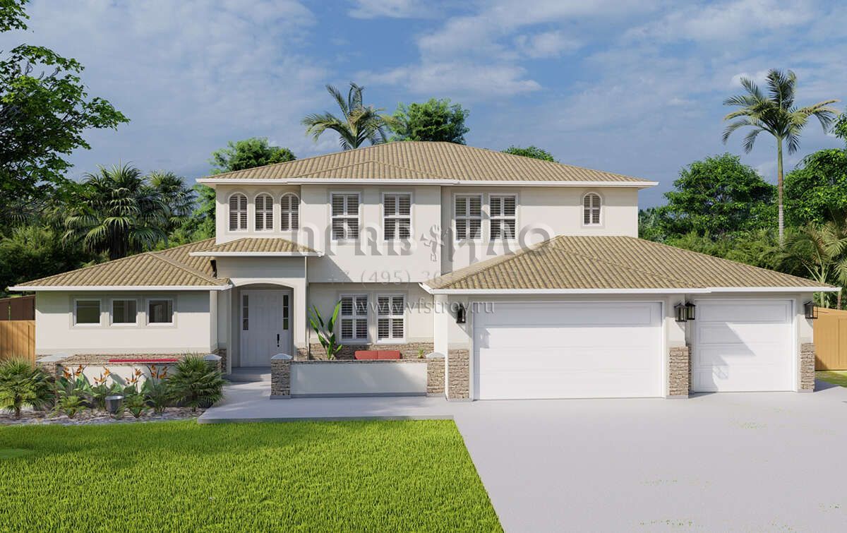 Проект двухэтажного дома с гаражом на три и более машин в английском стиле S5-359 (2802-00007)