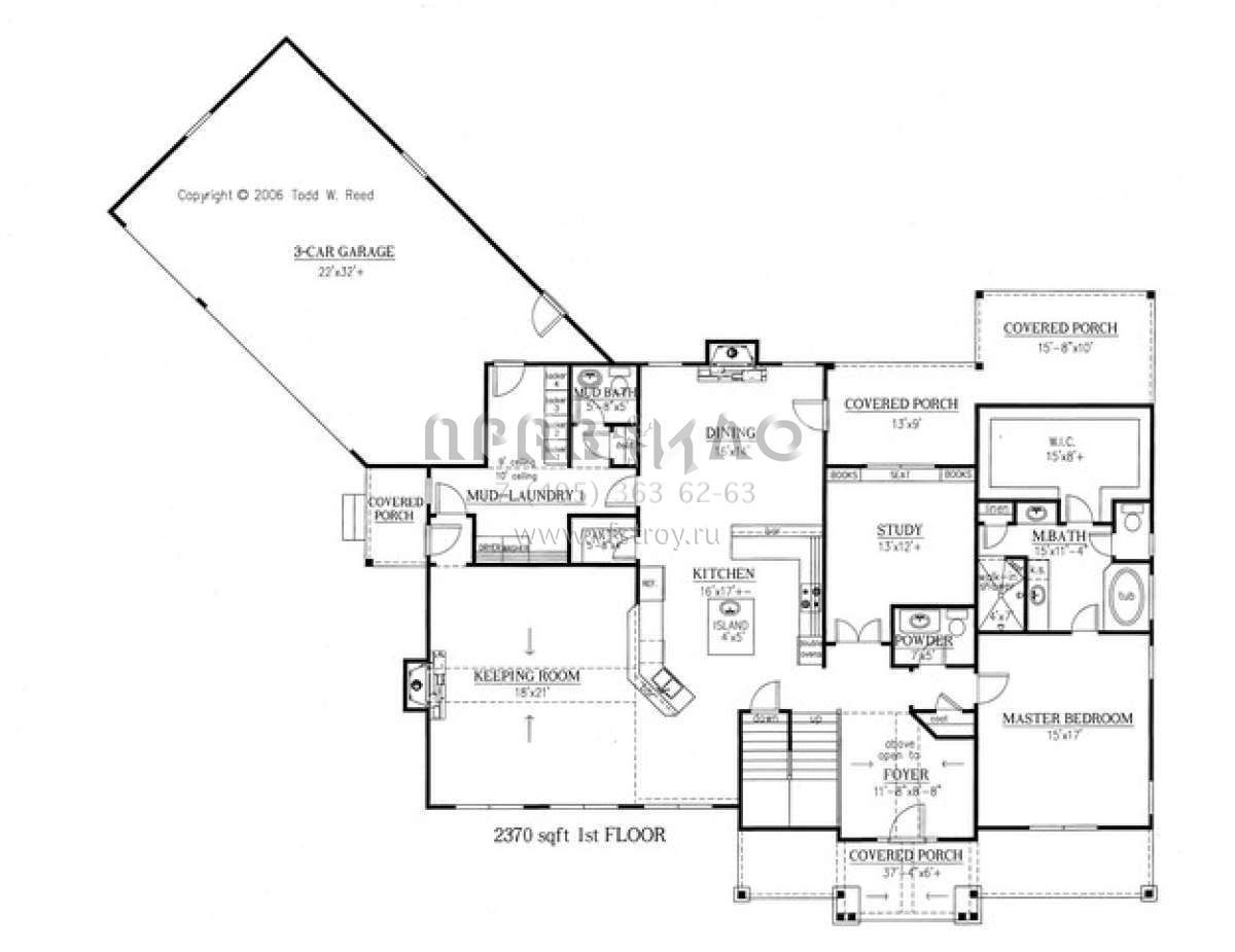 Проект одноэтажного дома с гаражом на три и более машин в американском стиле S5-359 (286-00007)