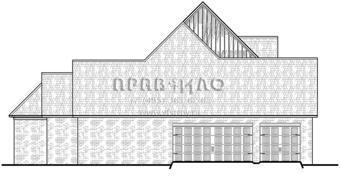 Это проект двухэтажного дома с гаражом на три и более машин жилой площадью 359 кв.м. Длина дома 20.4 м, ширина 25.6 м, высота 10.7 м. В доме пять спален и пять санузлов.