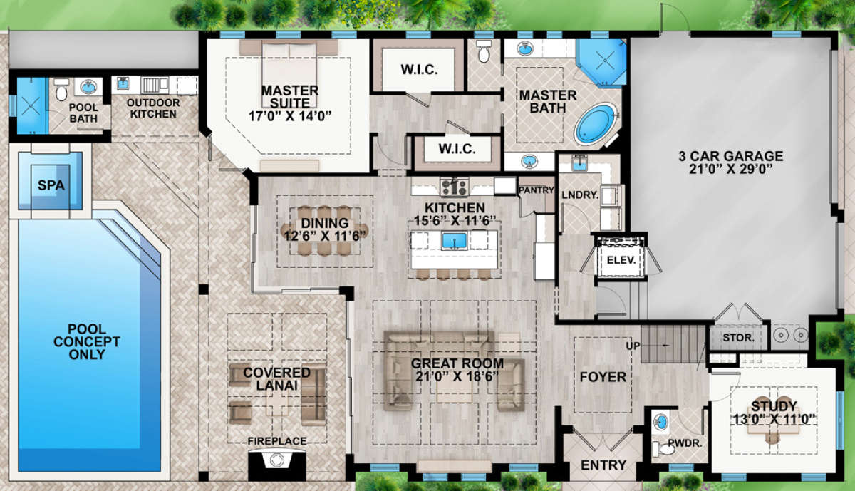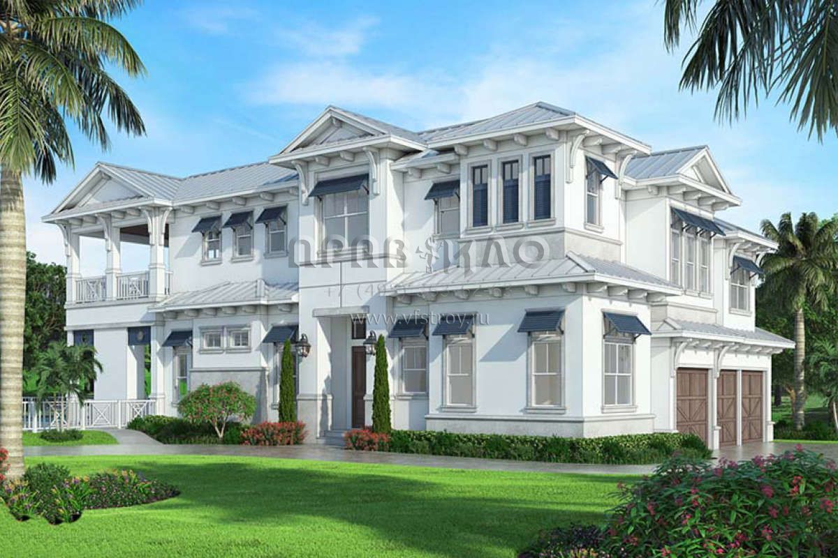 Проект двухэтажного дома с гаражом на три и более машин в прибрежном стиле S5-360 (207-00047)