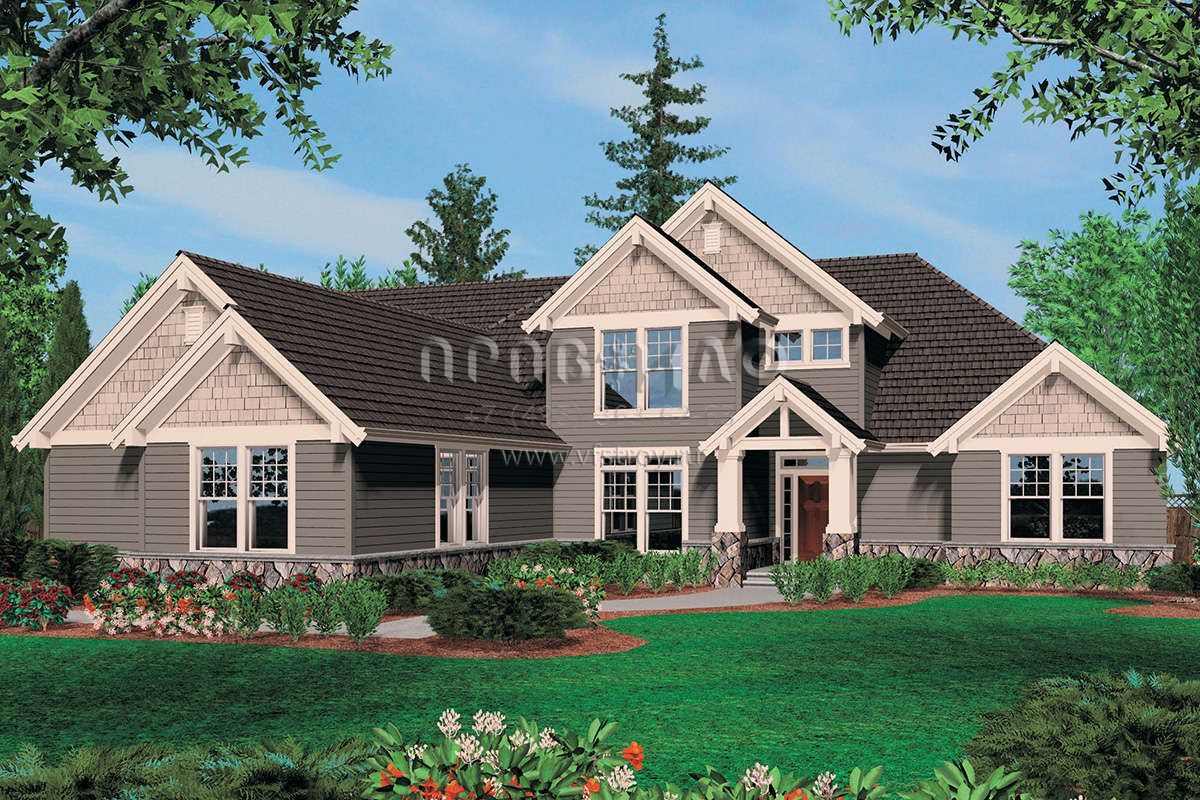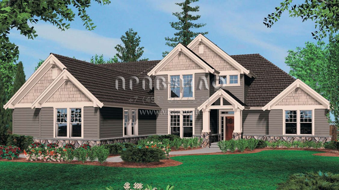 Проект двухэтажного дома с гаражом на три и более машин в американском стиле S5-362 (2559-00521)