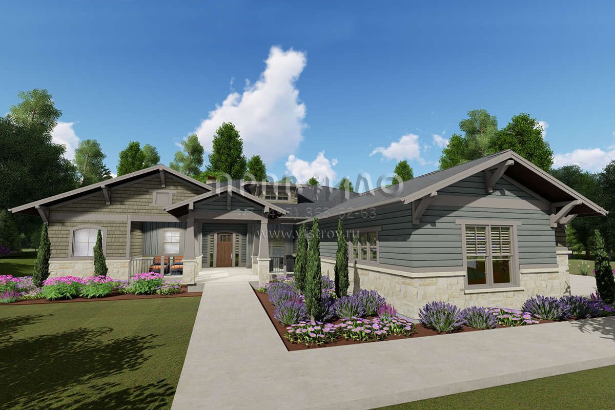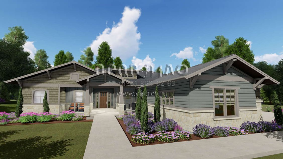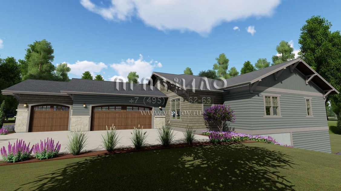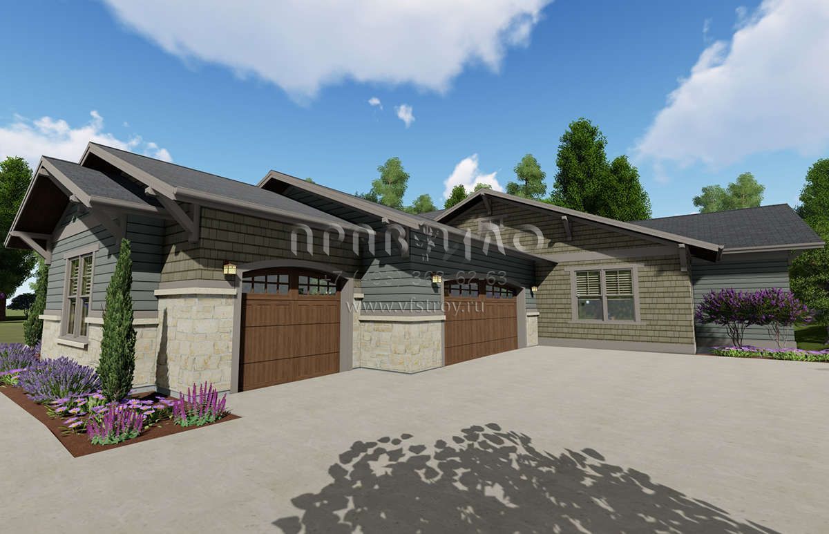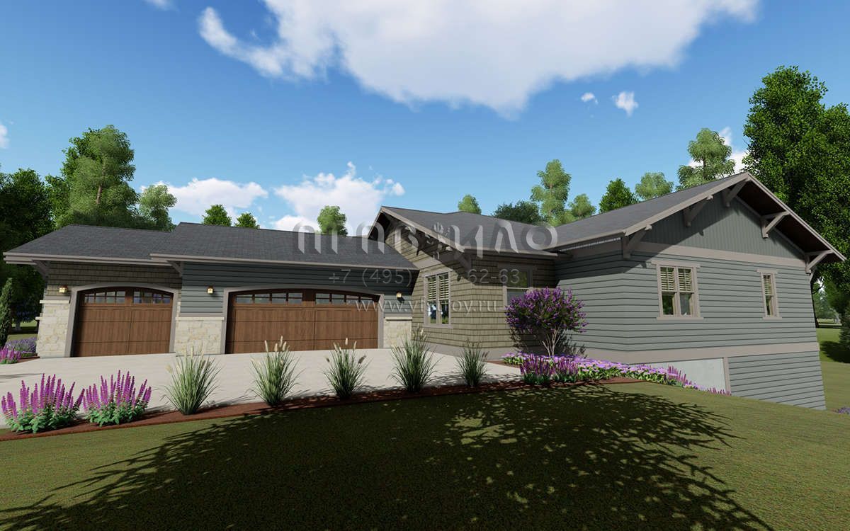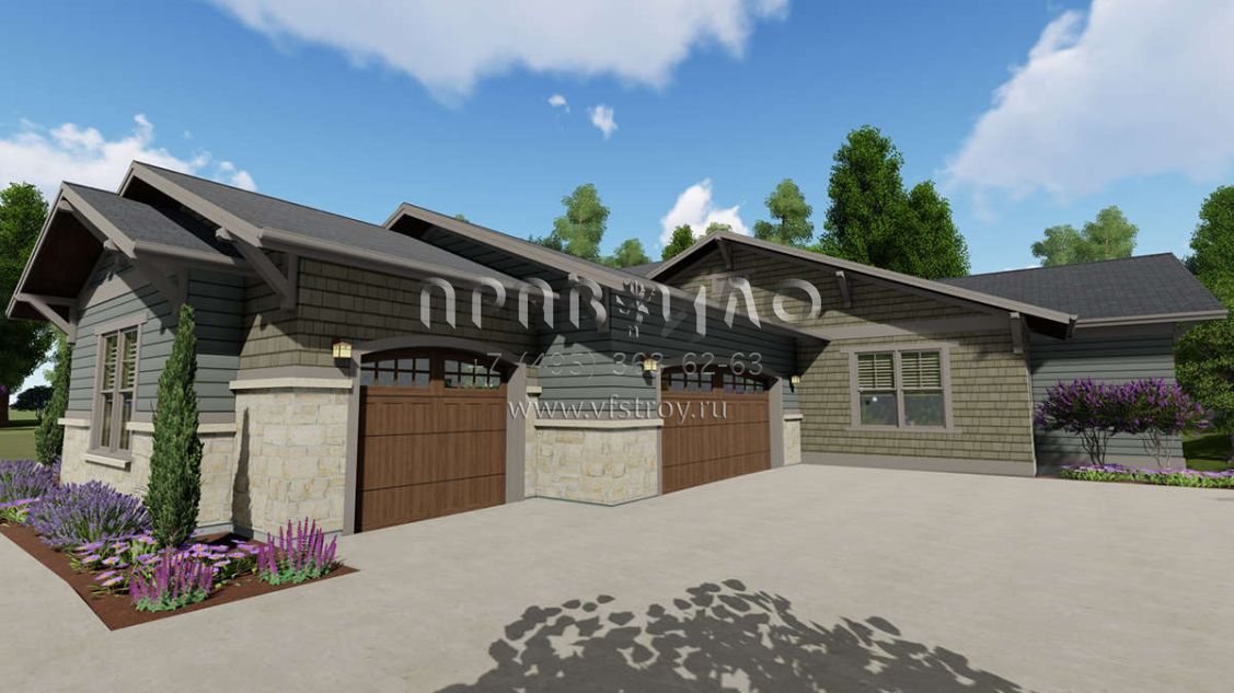 Проект одноэтажного дома с гаражом на три и более машин в американском стиле S5-362 (425-00022)