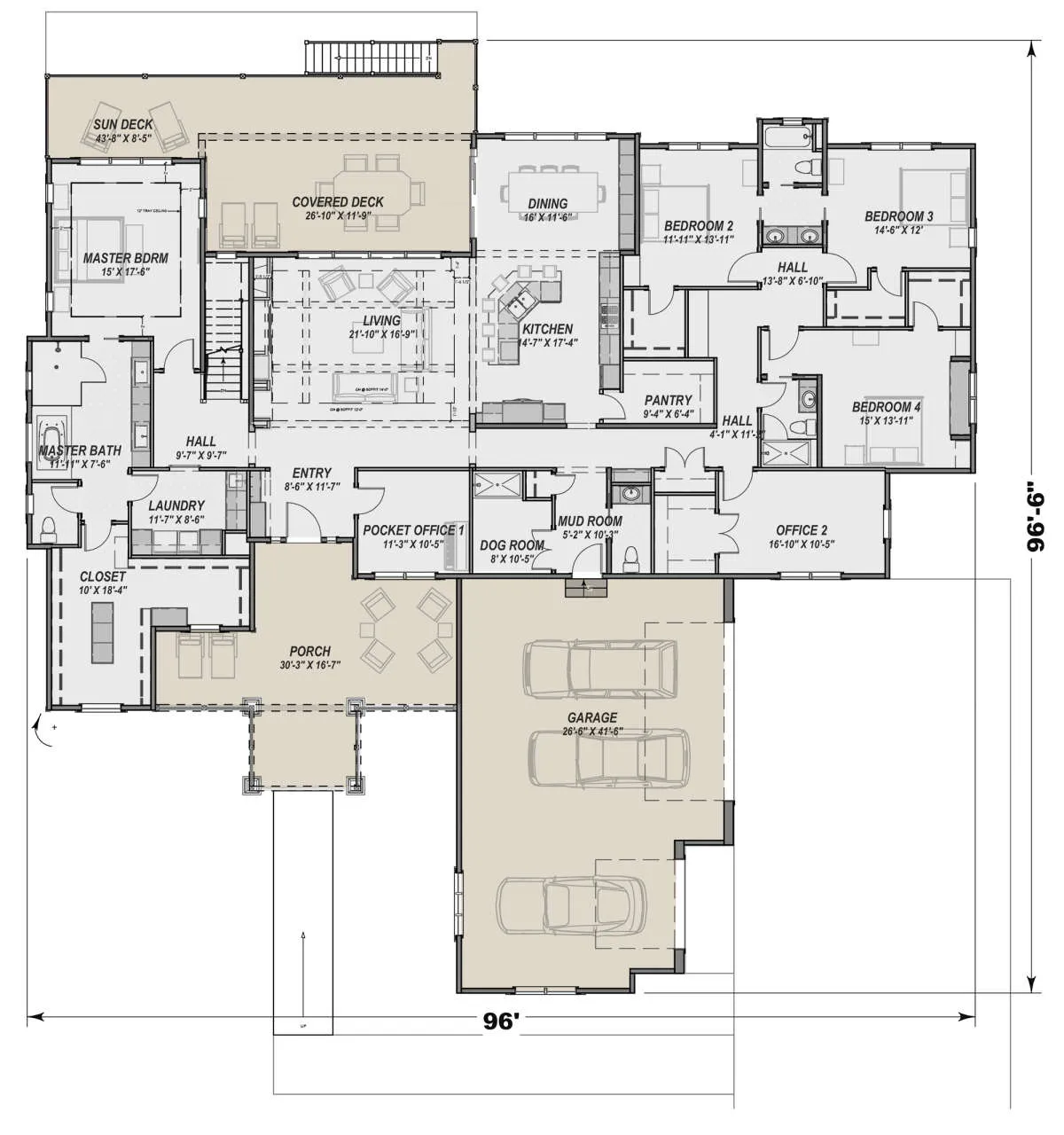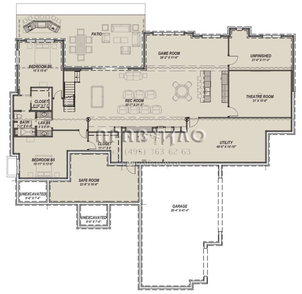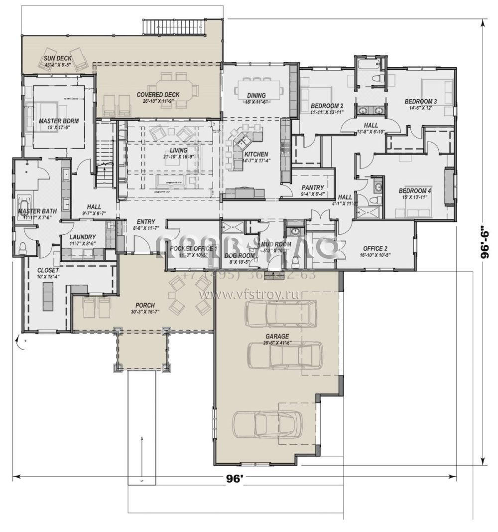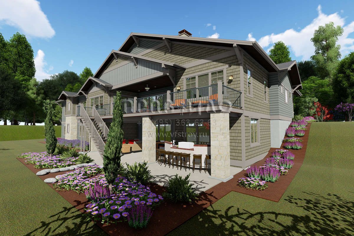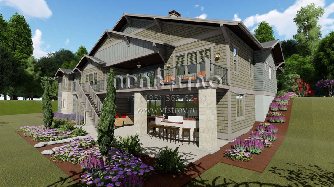 Проект одноэтажного дома с гаражом на три и более машин в американском стиле S5-362 (425-00022)