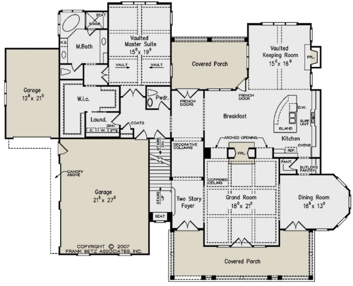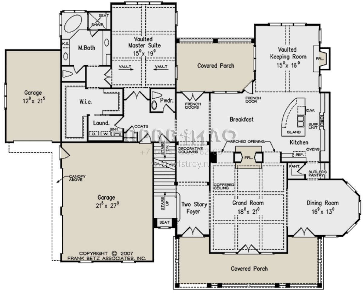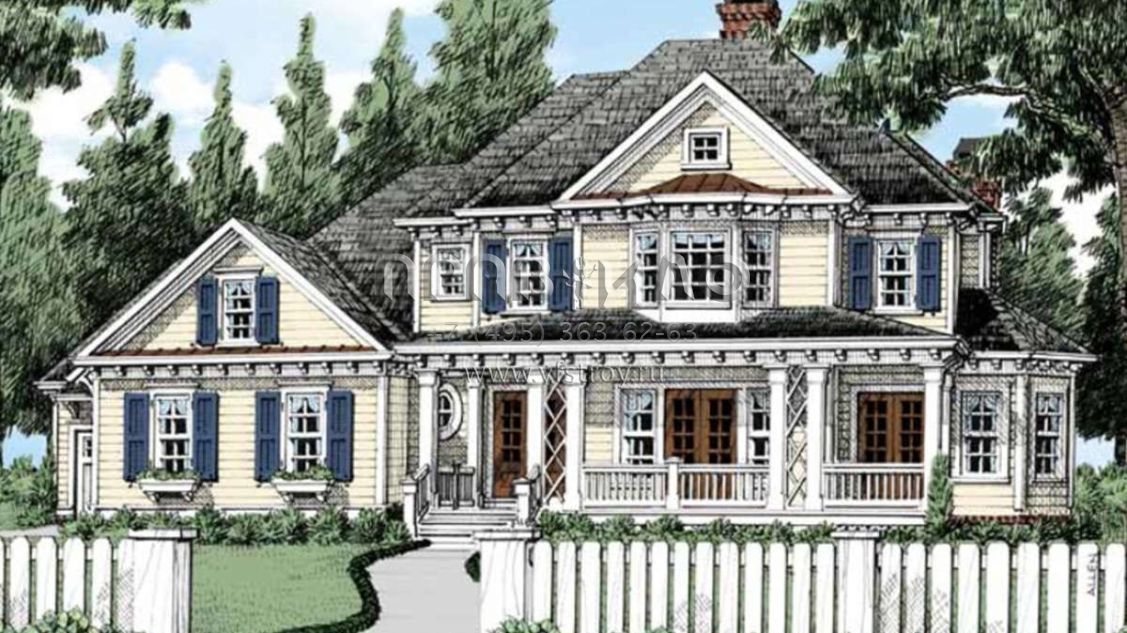 Проект двухэтажного дома с гаражом на три и более машин в стиле Ранчо S5-362 (8594-00225)
