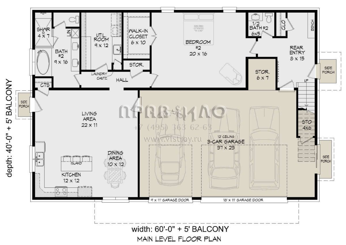 Проект двухэтажного дома с гаражом на три машины с плоской крышей S5-362 (940-00499)