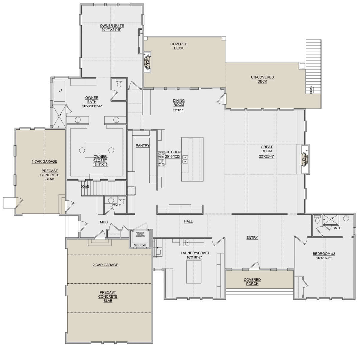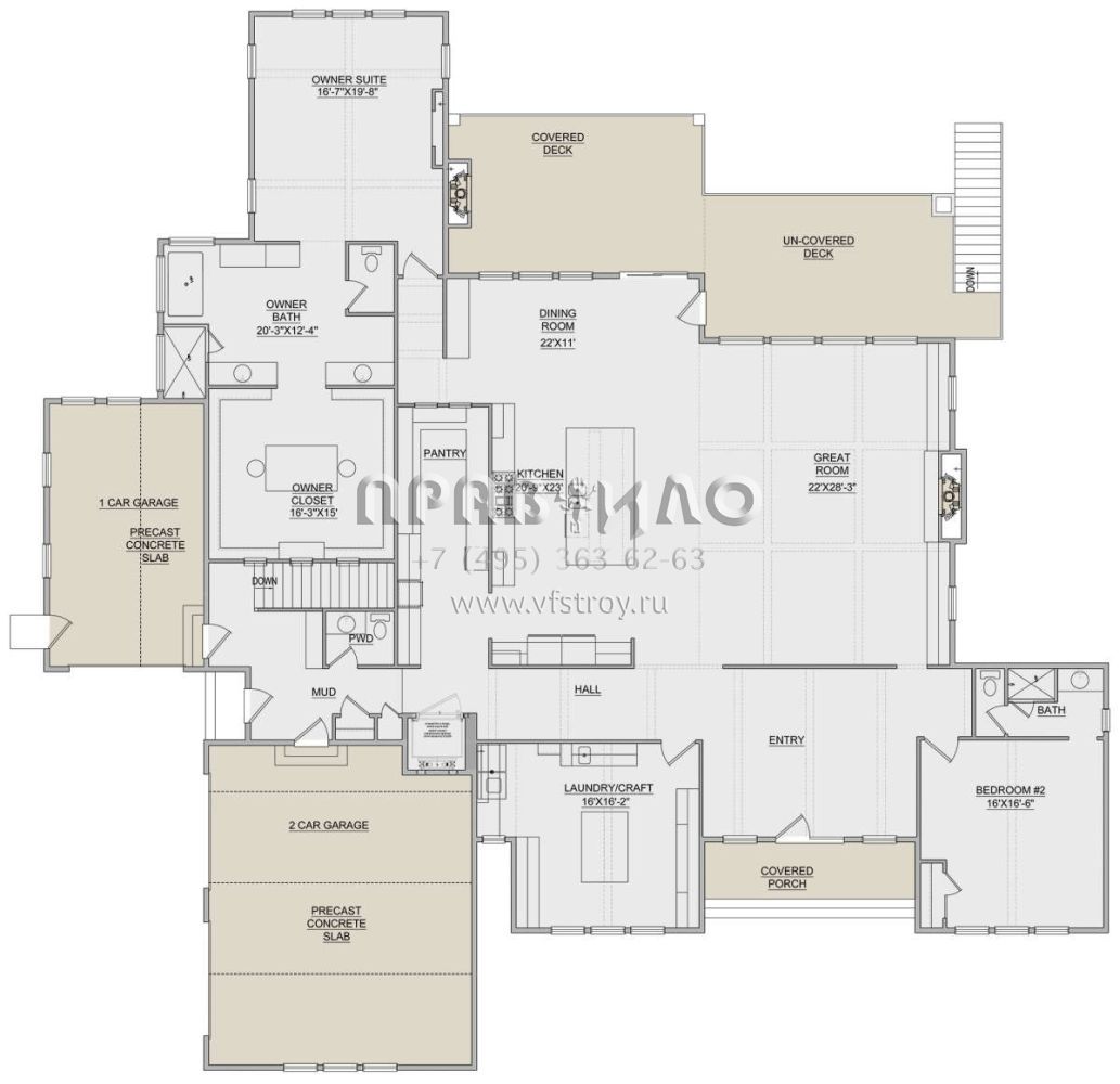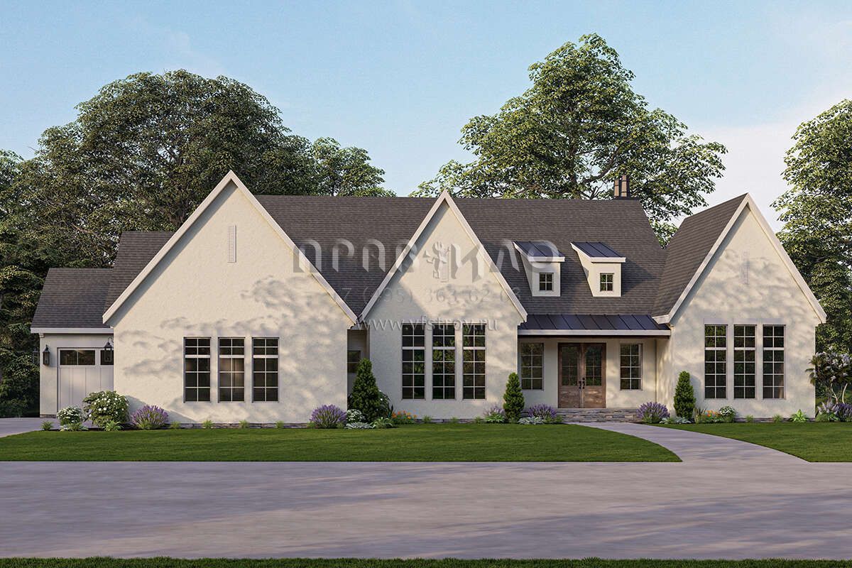 Проект одноэтажного дома с гаражом на три и более машин в стиле Ранчо S5-363 (8768-00010)