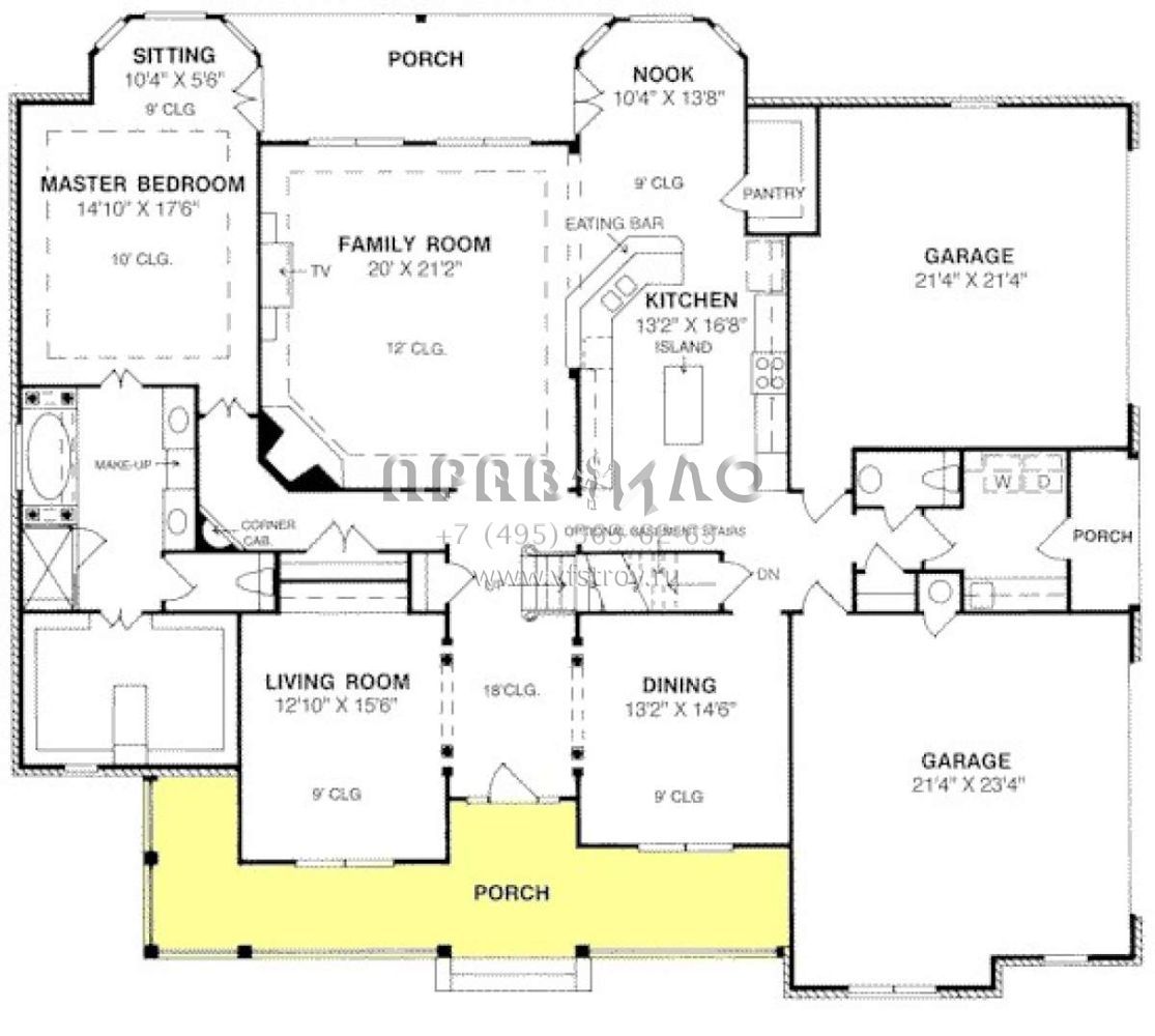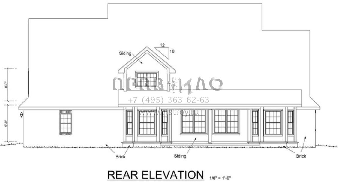 Проект двухэтажного дома с гаражом на три и более машин в стиле Ранчо S5-364 (4848-00271)