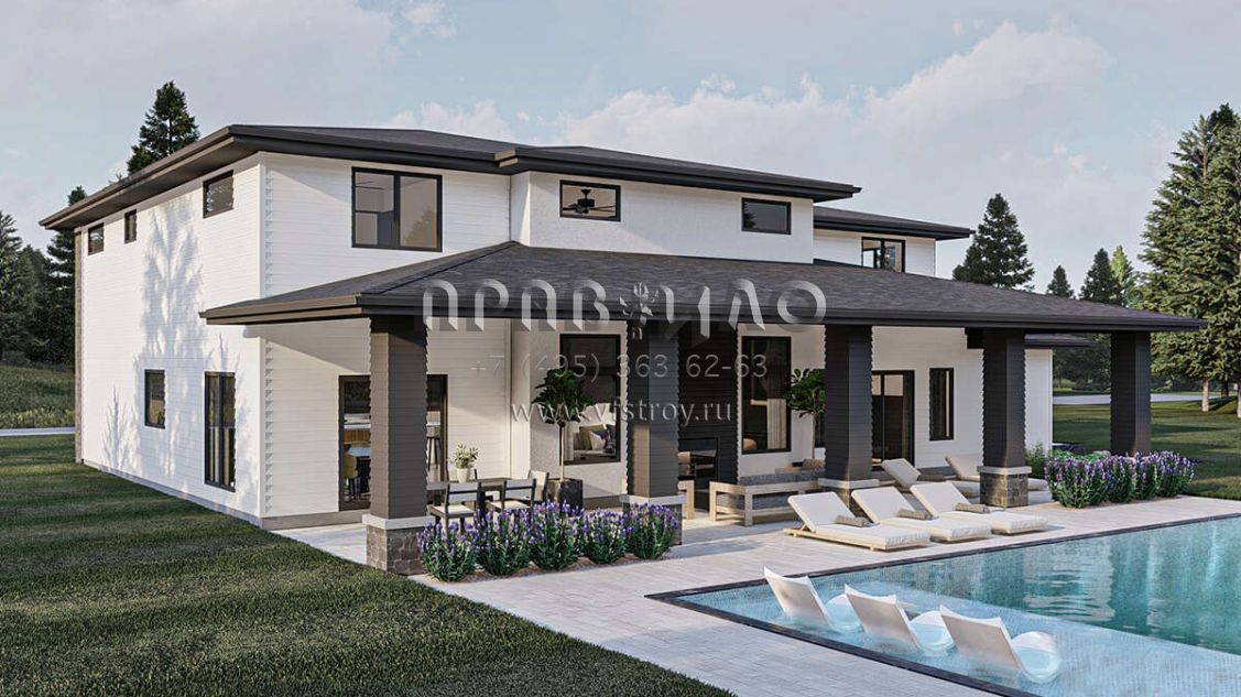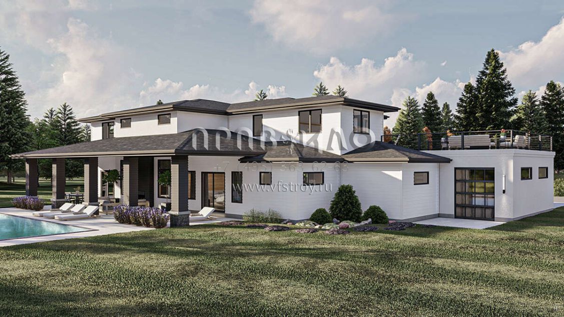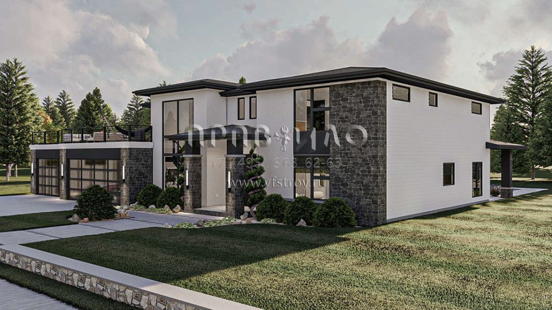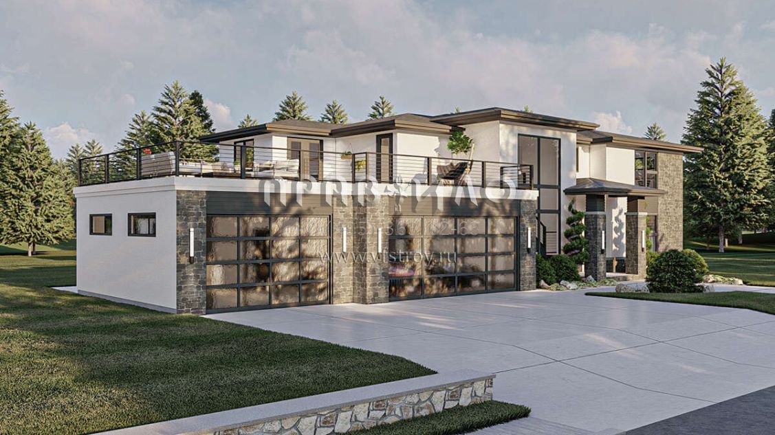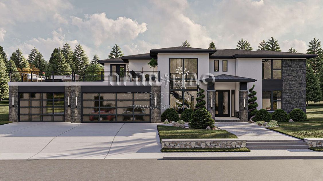 Проект двухэтажного дома с гаражом на три и более машин в современном стиле S5-364 (963-00804)