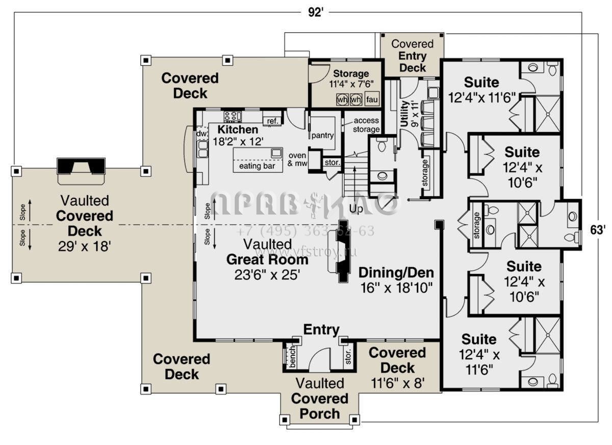 Проект двухэтажного дома без гаража в американском стиле S5-365 (035-00955)
