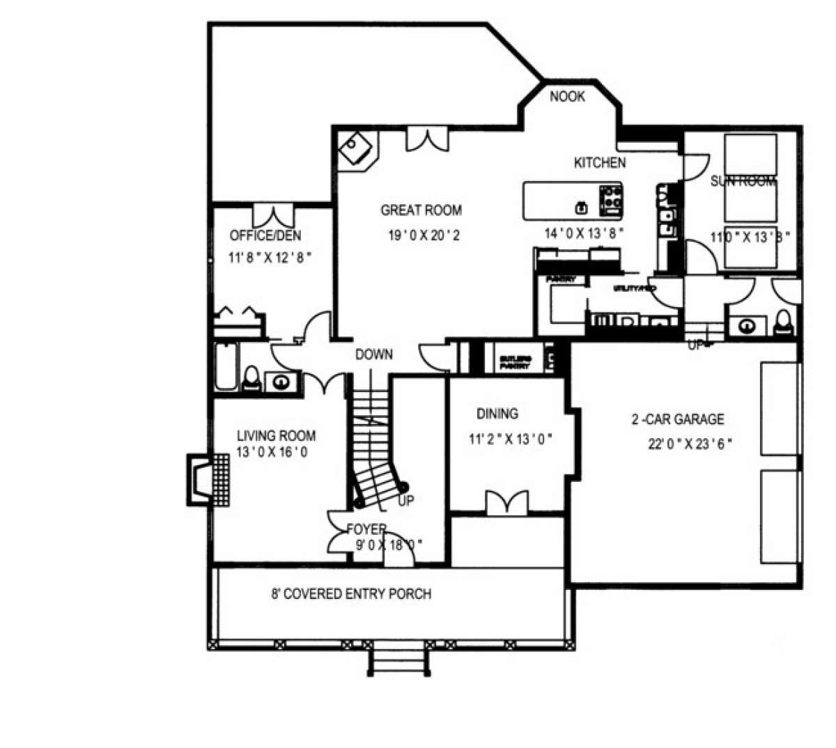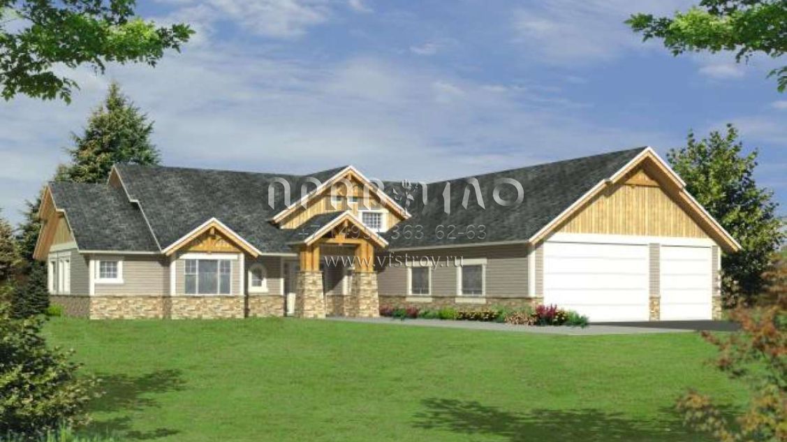 Проект двухэтажного дома с гаражом на три и более машин в стиле Ранчо S5-365 (039-00515)