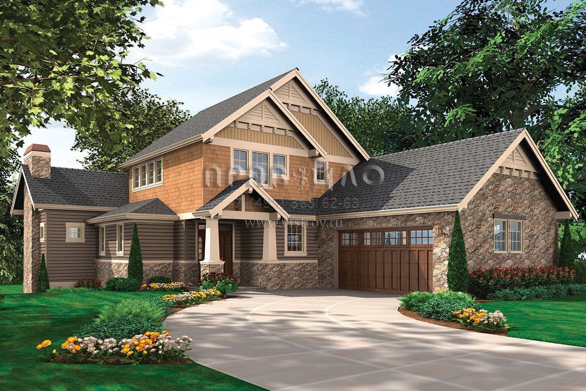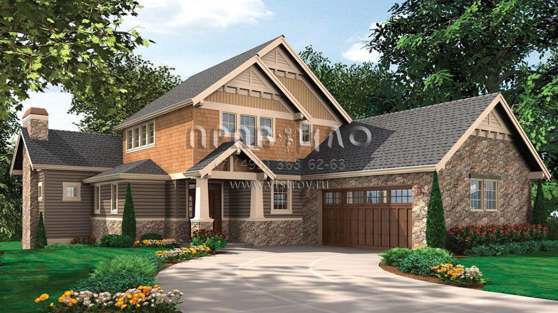Проект двухэтажного дома с гаражом на две машины в американском стиле S5-365 (2559-00557)