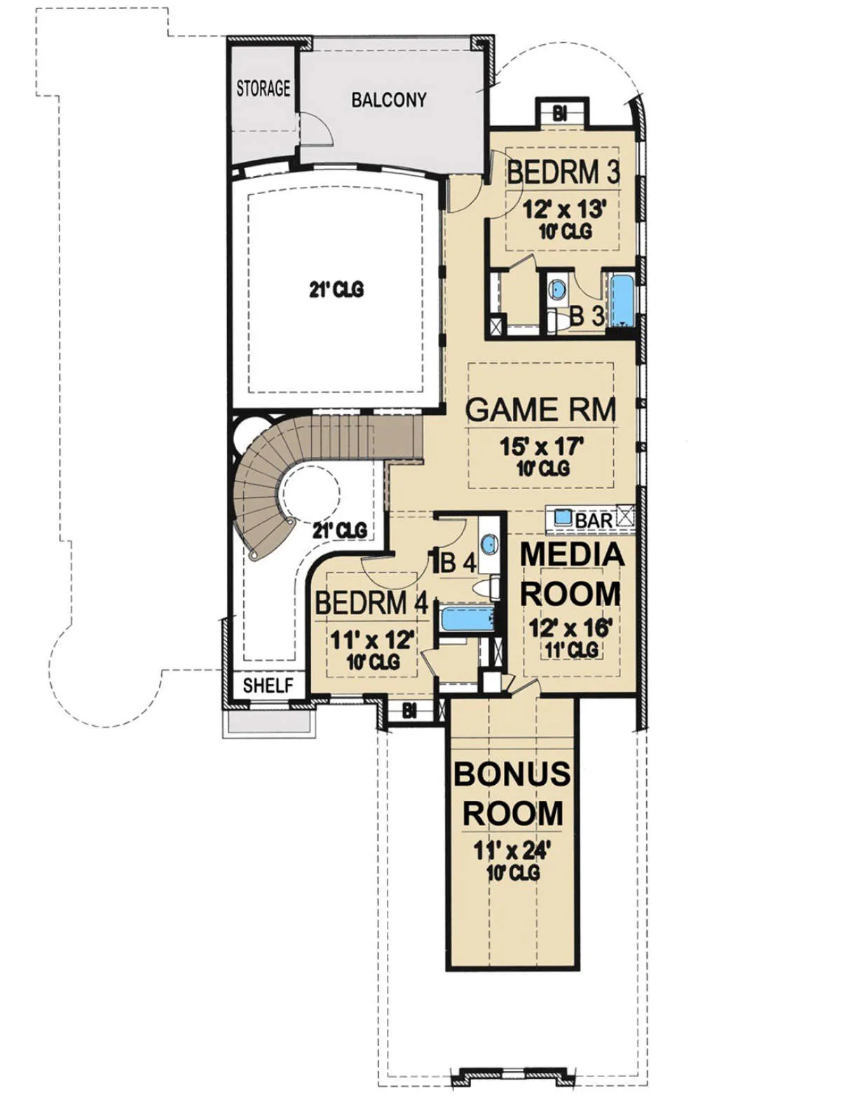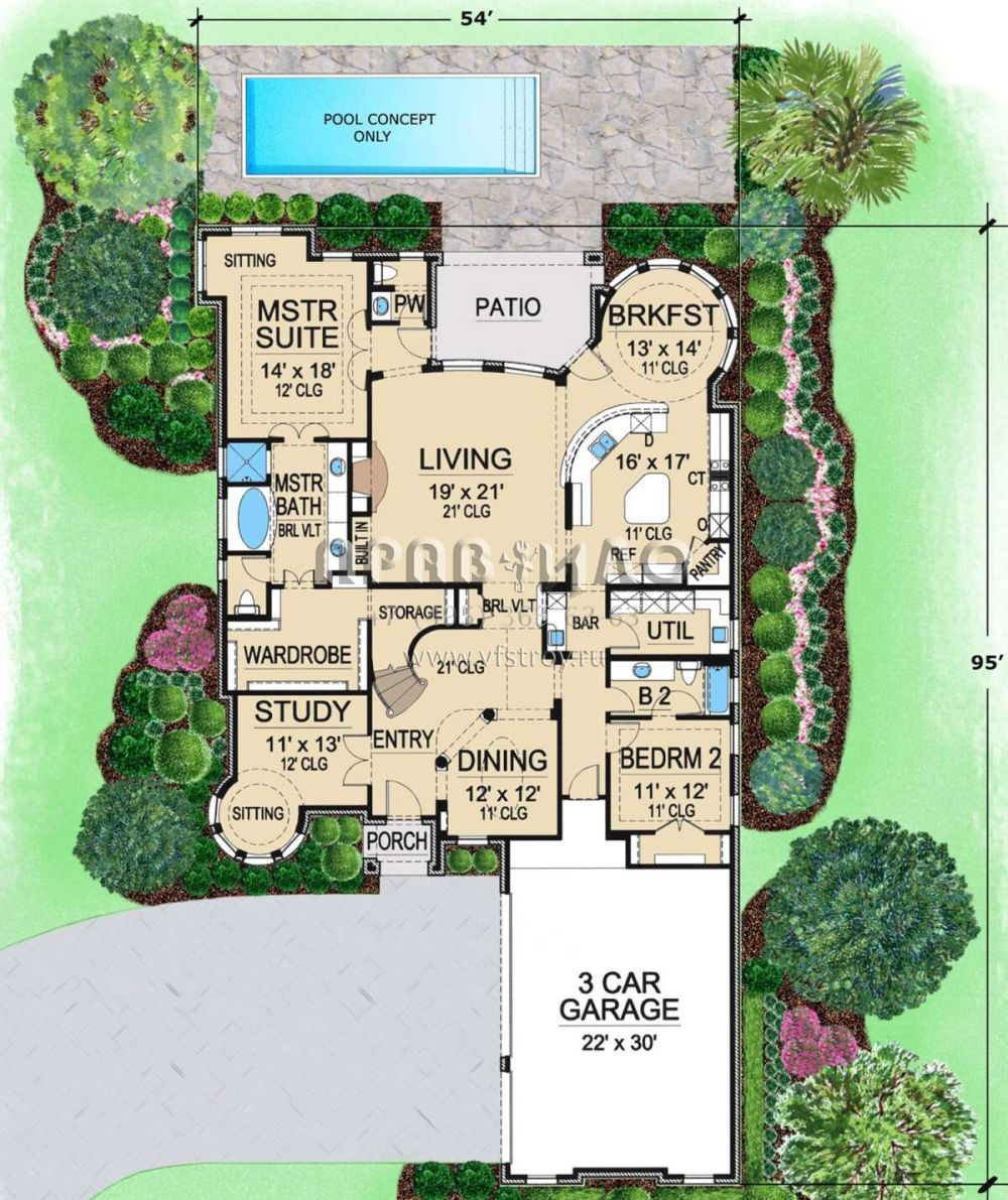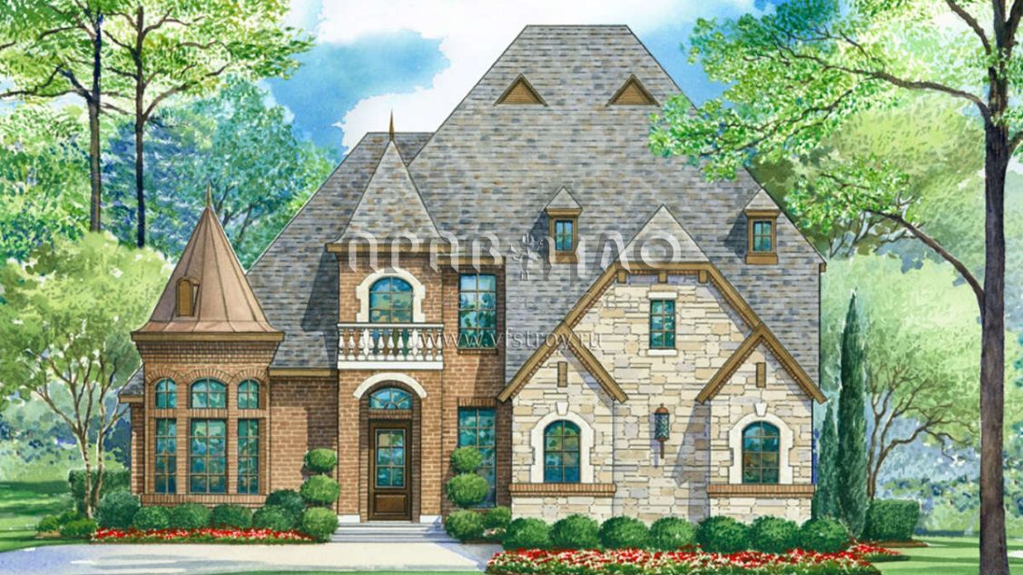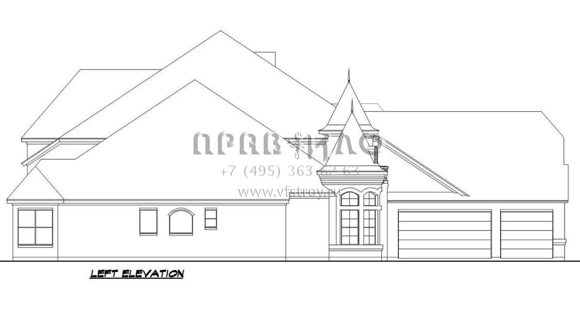 Проект двухэтажного дома с гаражом на три и более машин в стиле Ранчо S5-365 (5445-00395)
