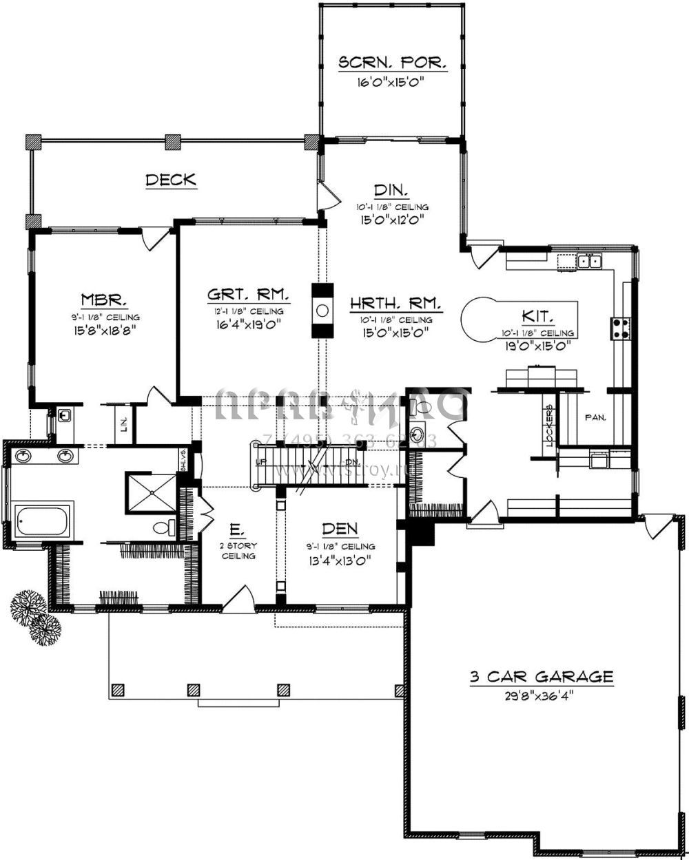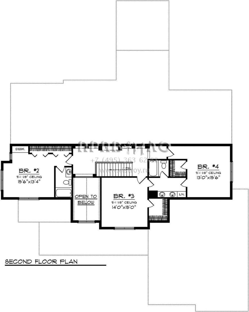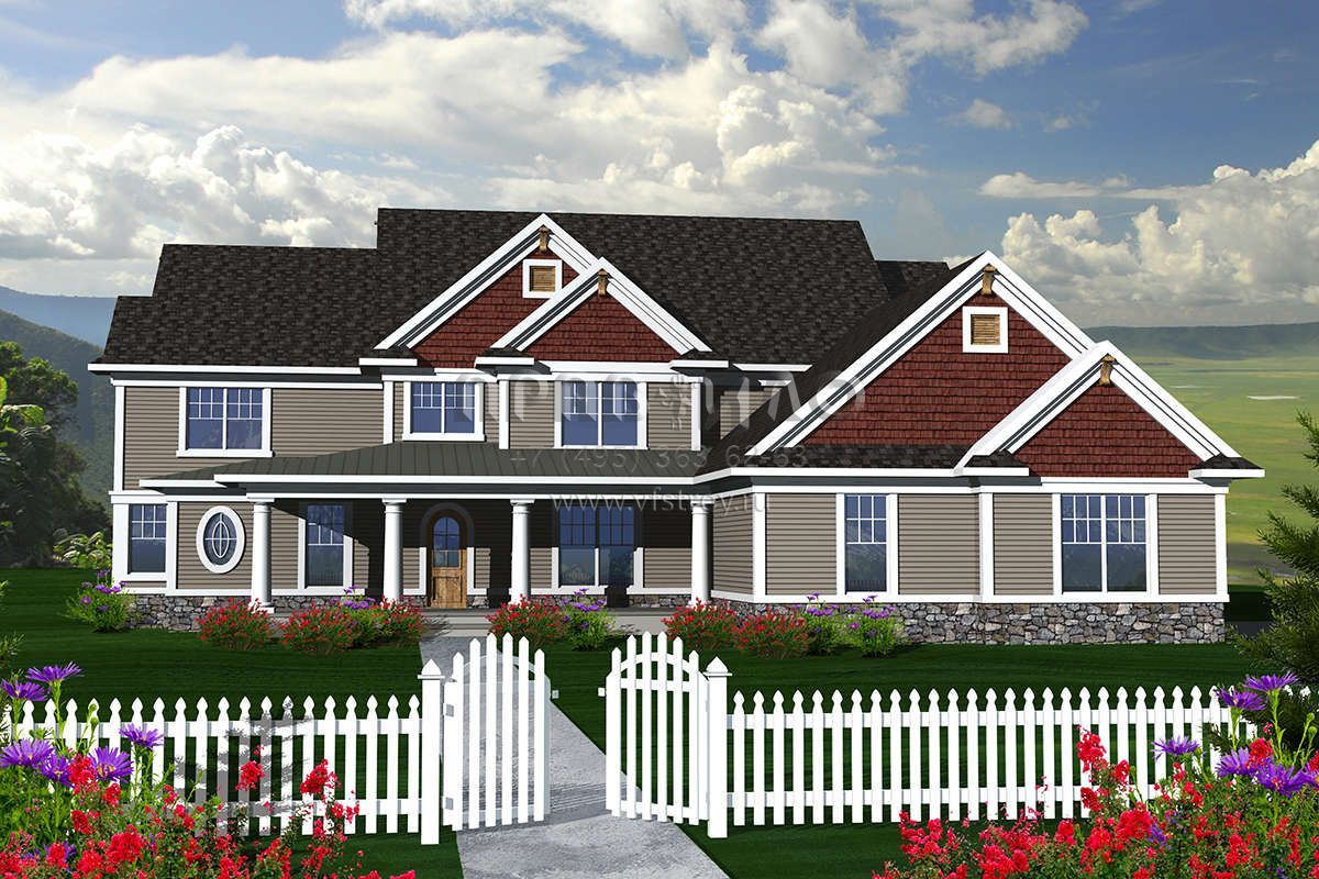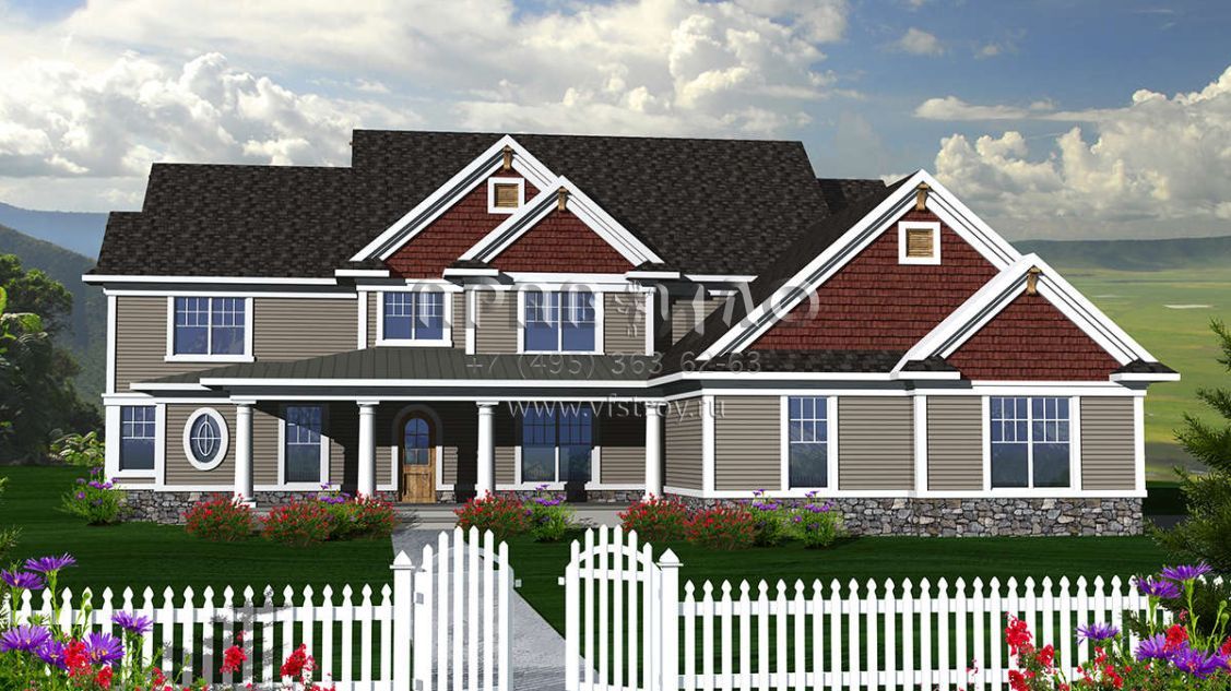Проект двухэтажного дома с гаражом на три и более машин в стиле Ранчо S5-366 (1020-00221)