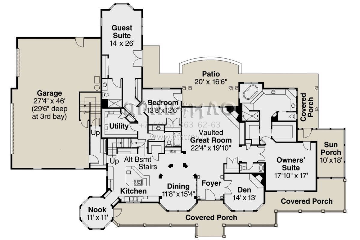 Поскольку этот проект разрабатывался иностранными архитекторами, для строительства дома требуется переработка проекта под действующие в России нормы. Данные визуализации проекта представлены для ознакомления с концепцией проекта. Проект разработан американским архитектурным бюро и представлен America's Best House Plans.