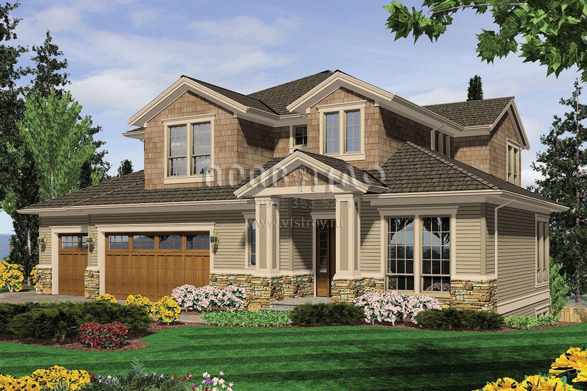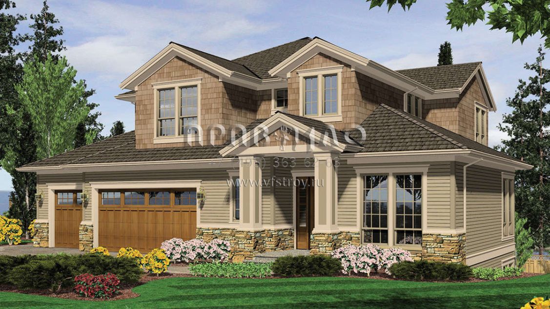 Проект двухэтажного дома с гаражом на три и более машин в американском стиле S5-368 (2559-00546)