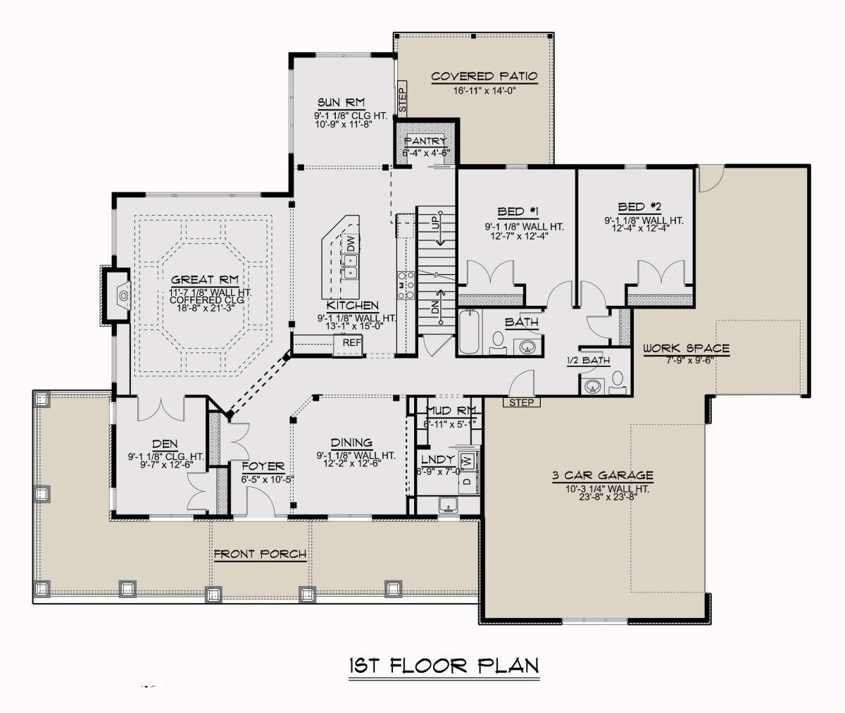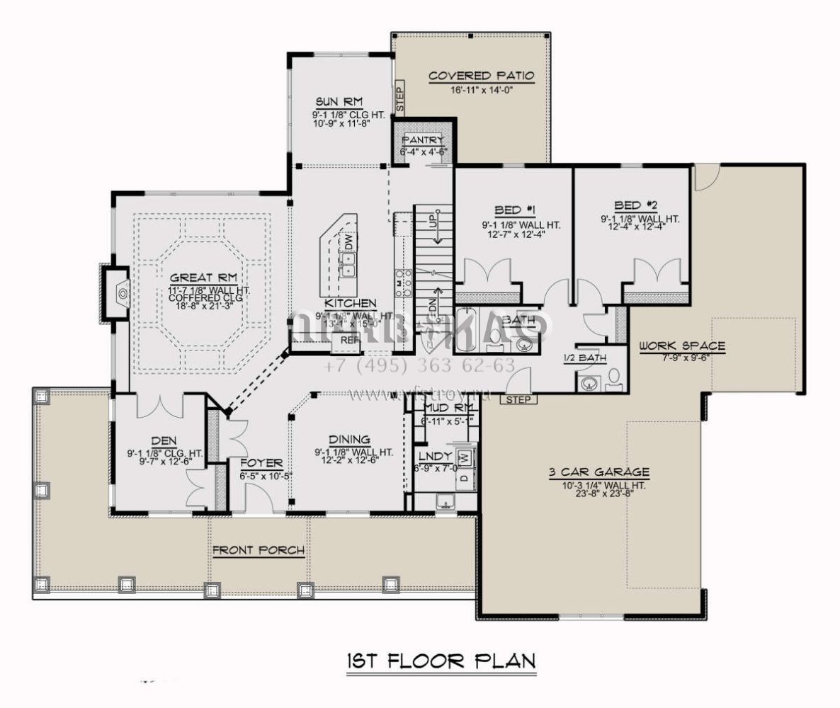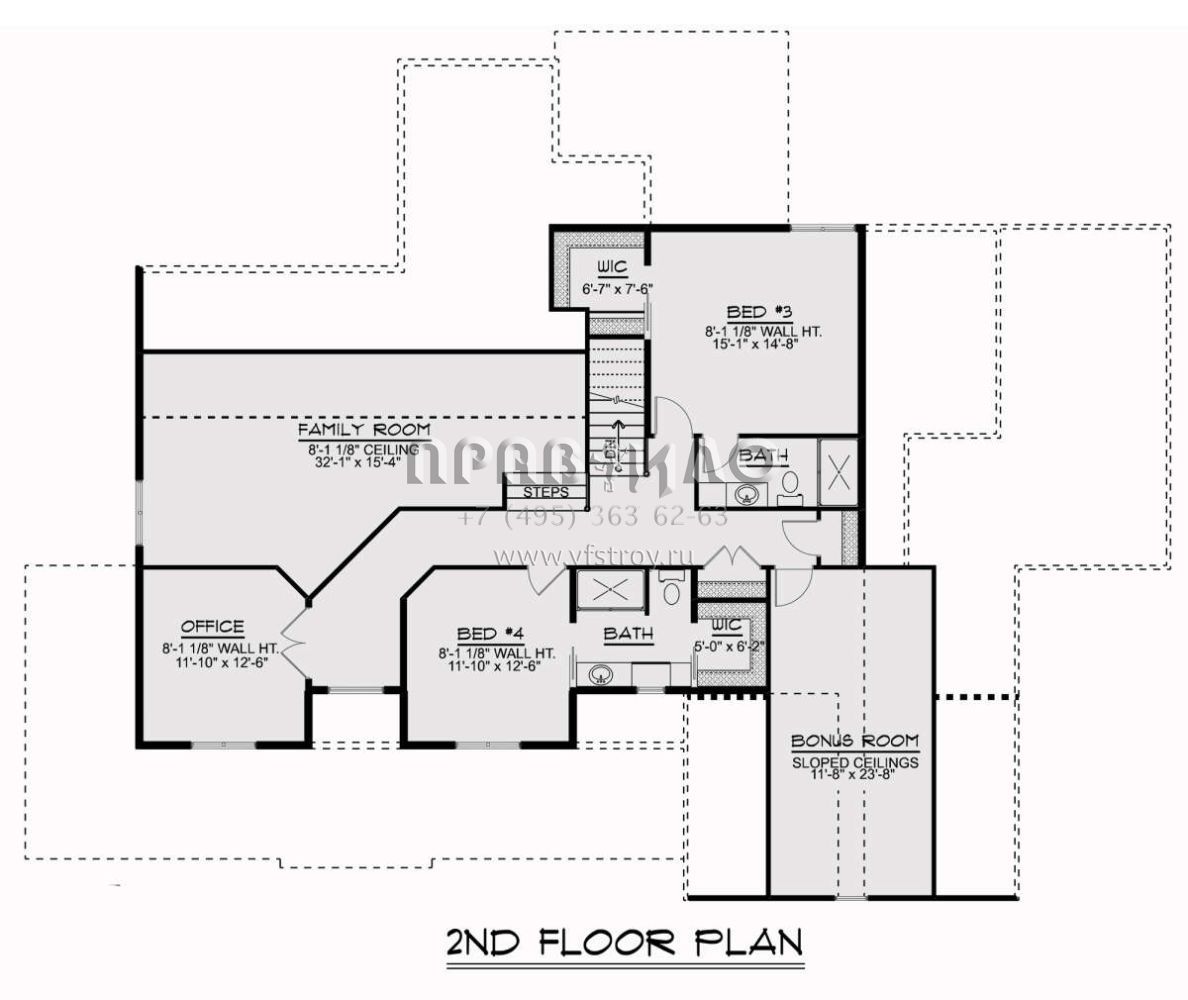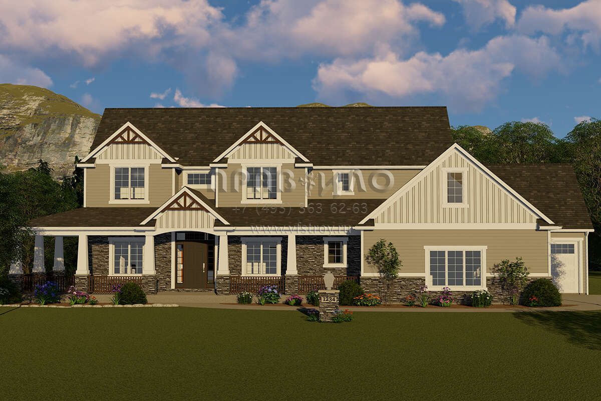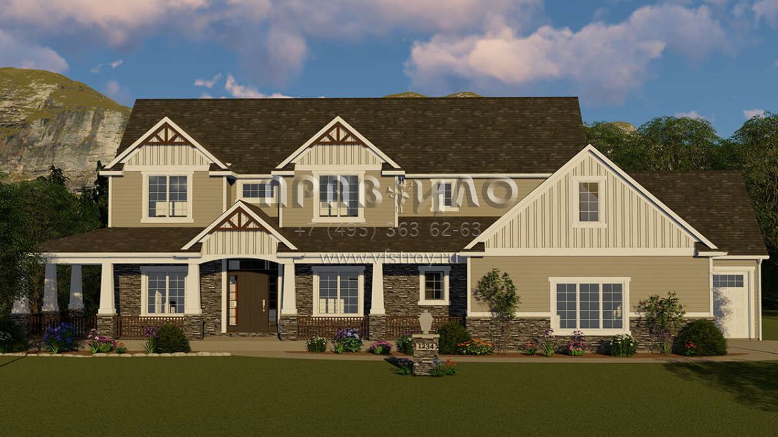 Проект двухэтажного дома с гаражом на три и более машин в стиле Ранчо S5-368 (5032-00022)