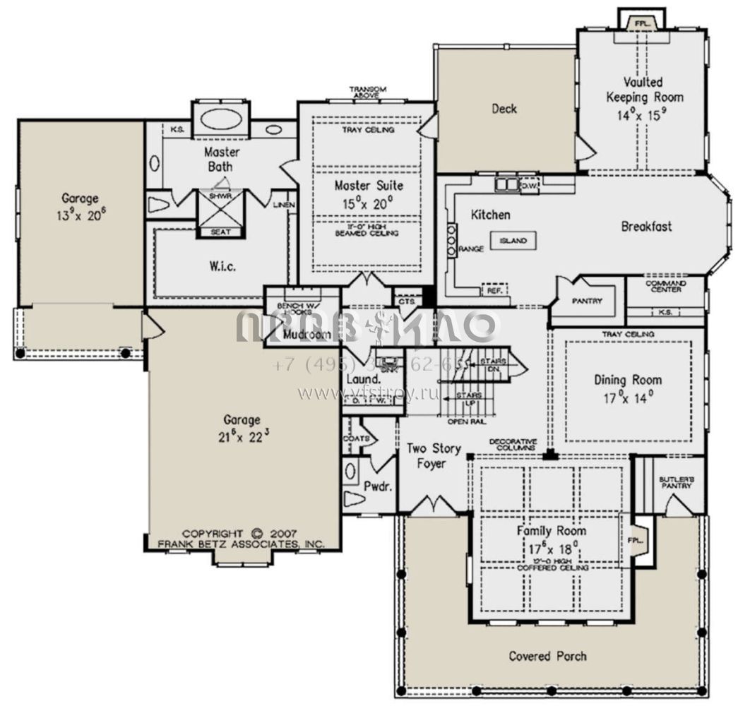Проект двухэтажного дома с гаражом на три и более машин в стиле Ранчо S5-368 (8594-00226)