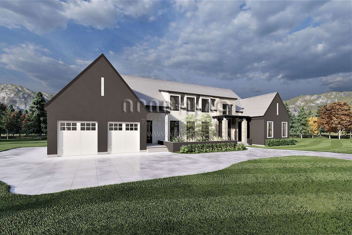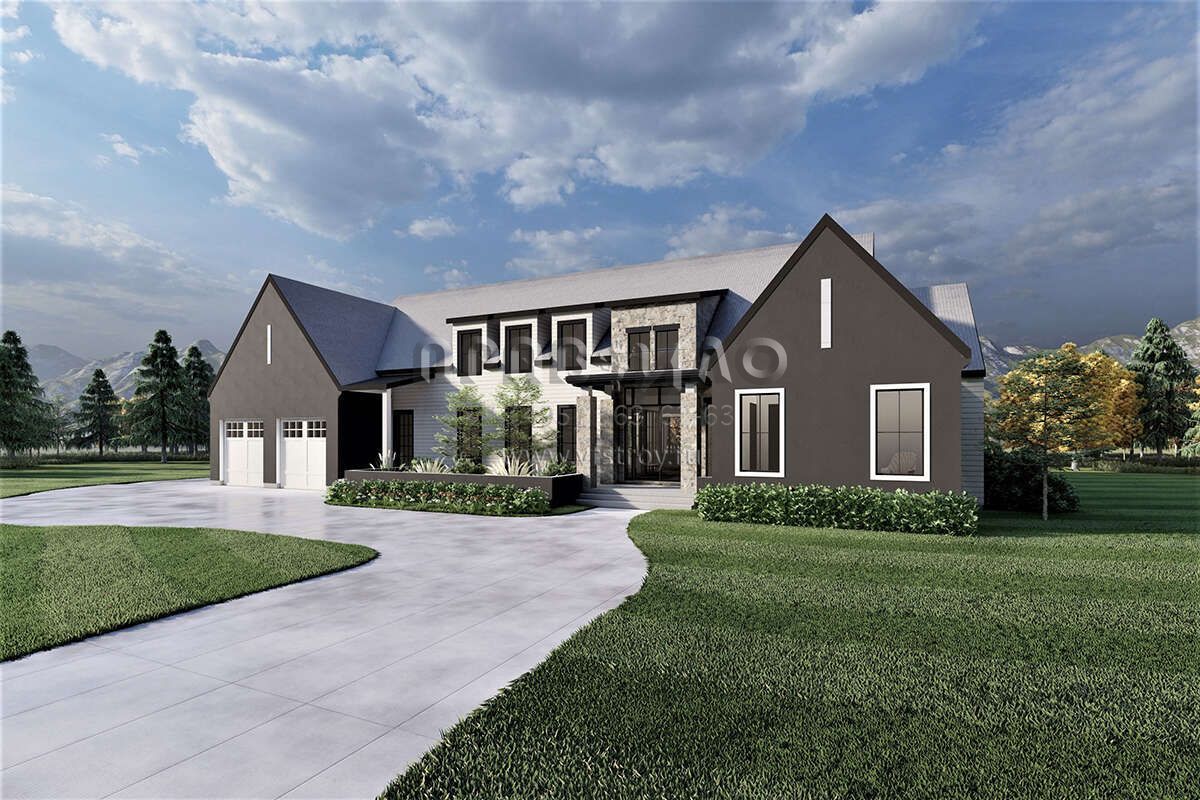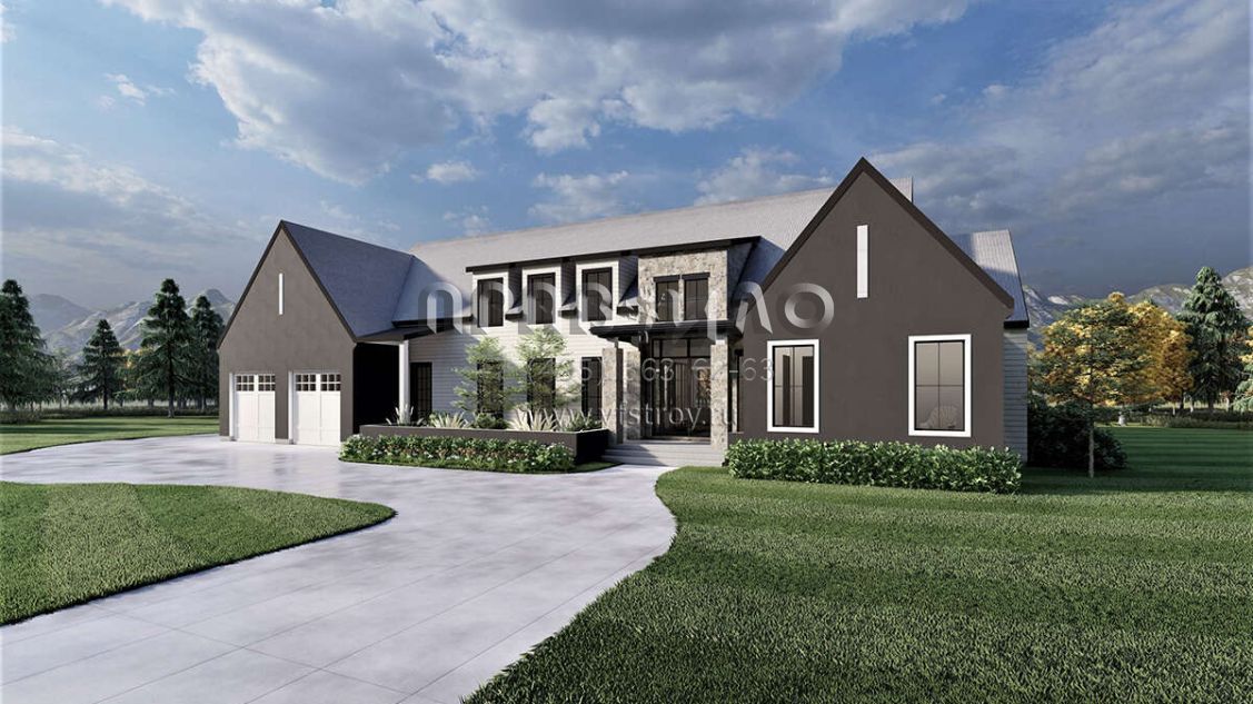 Проект двухэтажного дома с гаражом на три и более машин в современном стиле S5-369 (6422-00053)