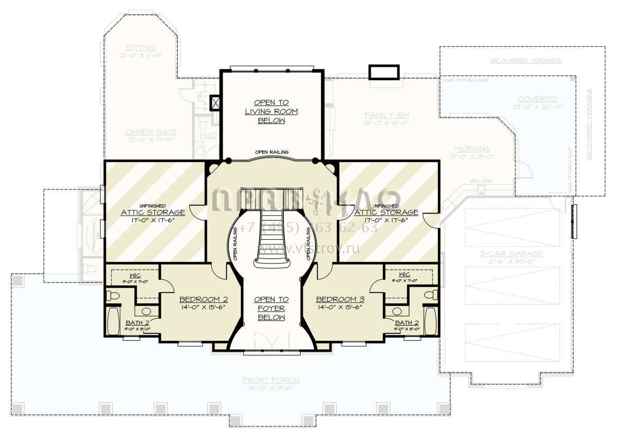 Поскольку этот проект разрабатывался иностранными архитекторами, для строительства дома требуется переработка проекта под действующие в России нормы. Данные визуализации проекта представлены для ознакомления с концепцией проекта. Проект разработан американским архитектурным бюро и представлен America's Best House Plans.