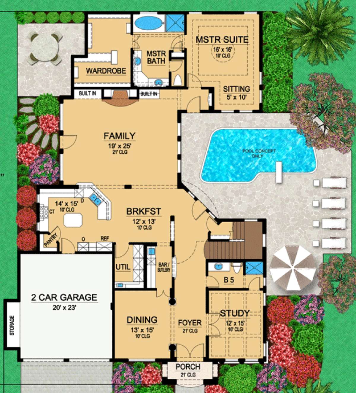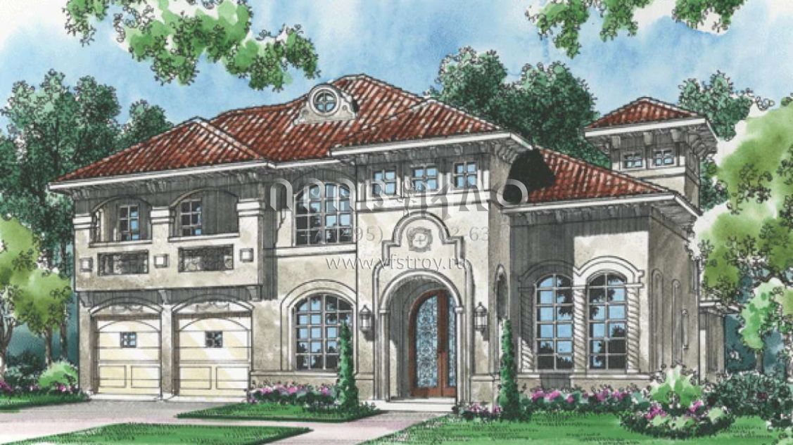 Проект двухэтажного дома с гаражом на две машины в прибрежном стиле S5-370 (5445-00079)