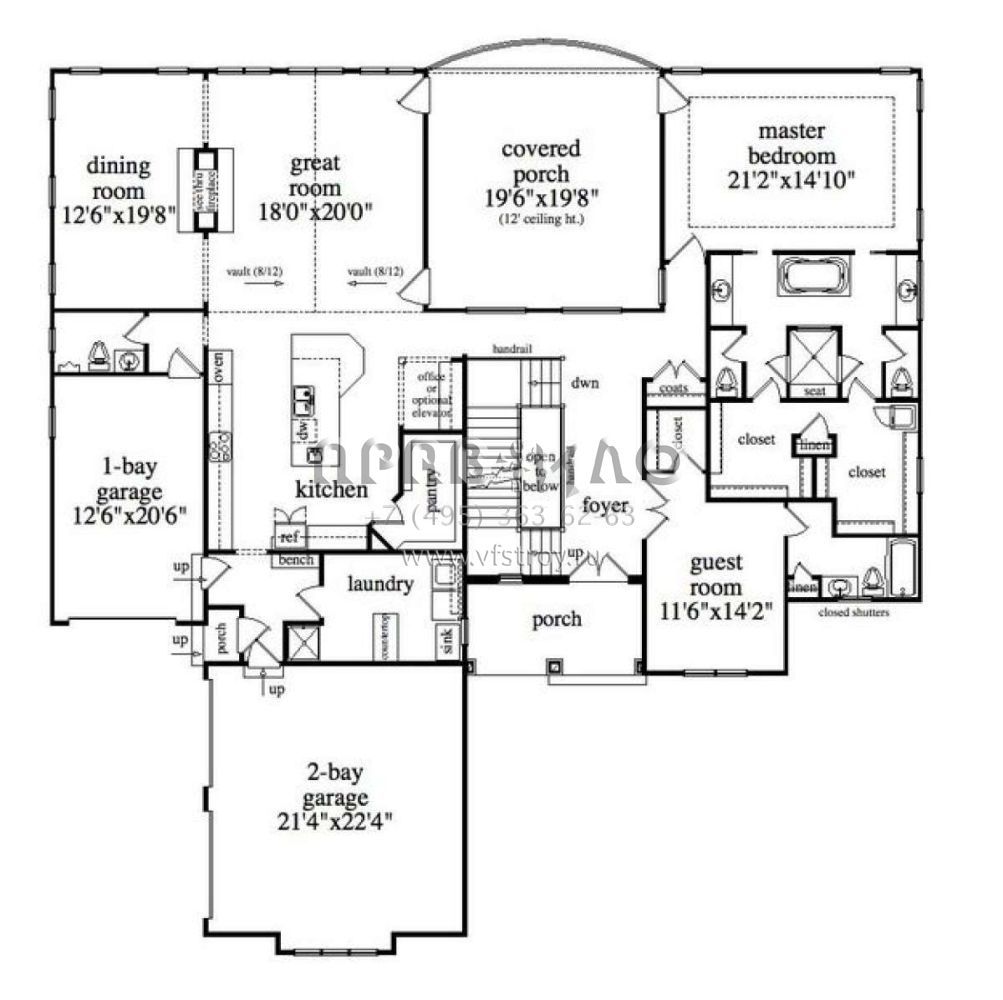 Проект двухэтажного дома с гаражом на две машины в стиле Ранчо S5-370 (957-00014)