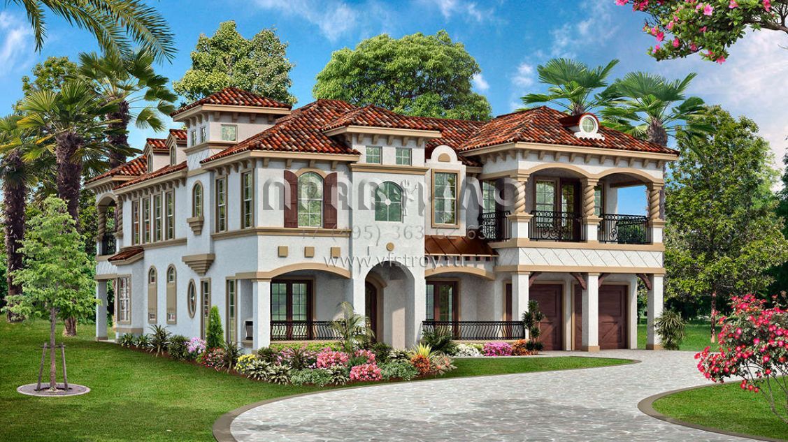 Проект двухэтажного дома с гаражом на три и более машин в прибрежном стиле S5-371 (5445-00319)