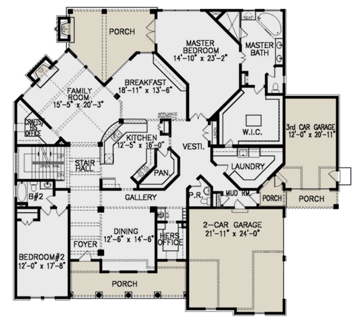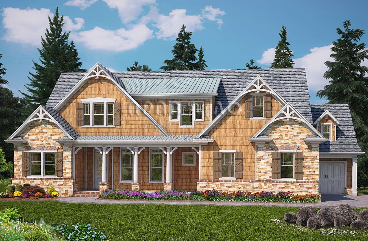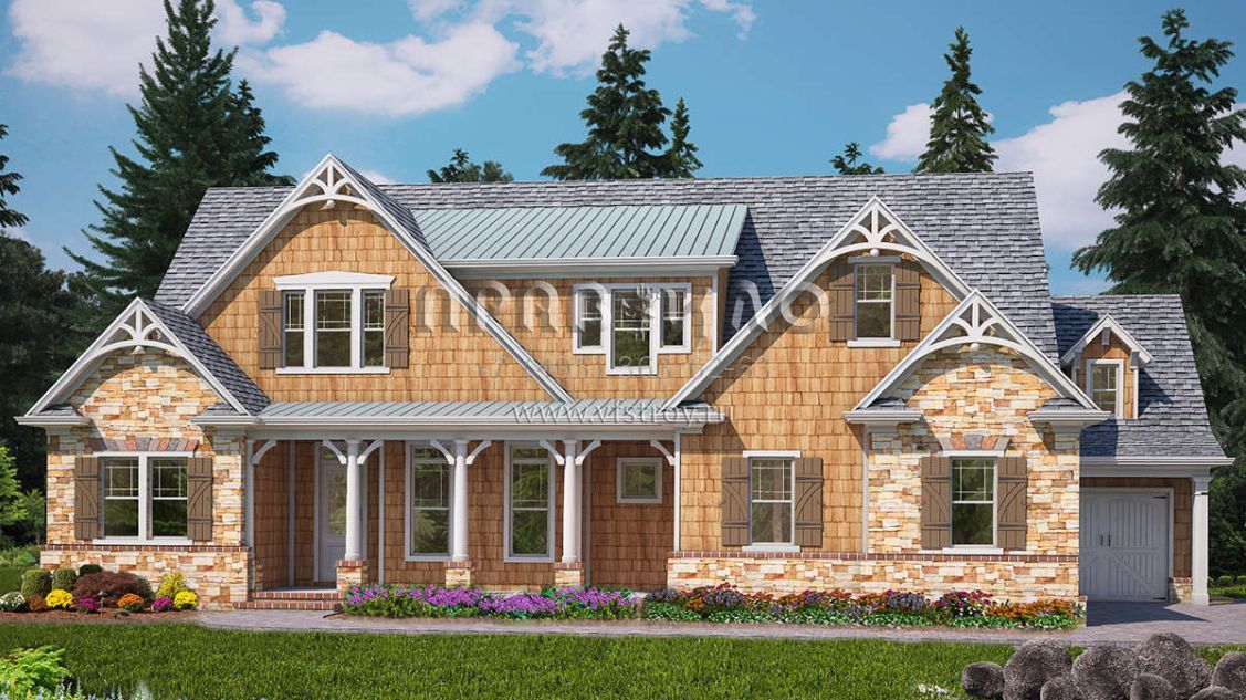 Проект двухэтажного дома с гаражом на три и более машин в американском стиле S5-371 (699-00179)