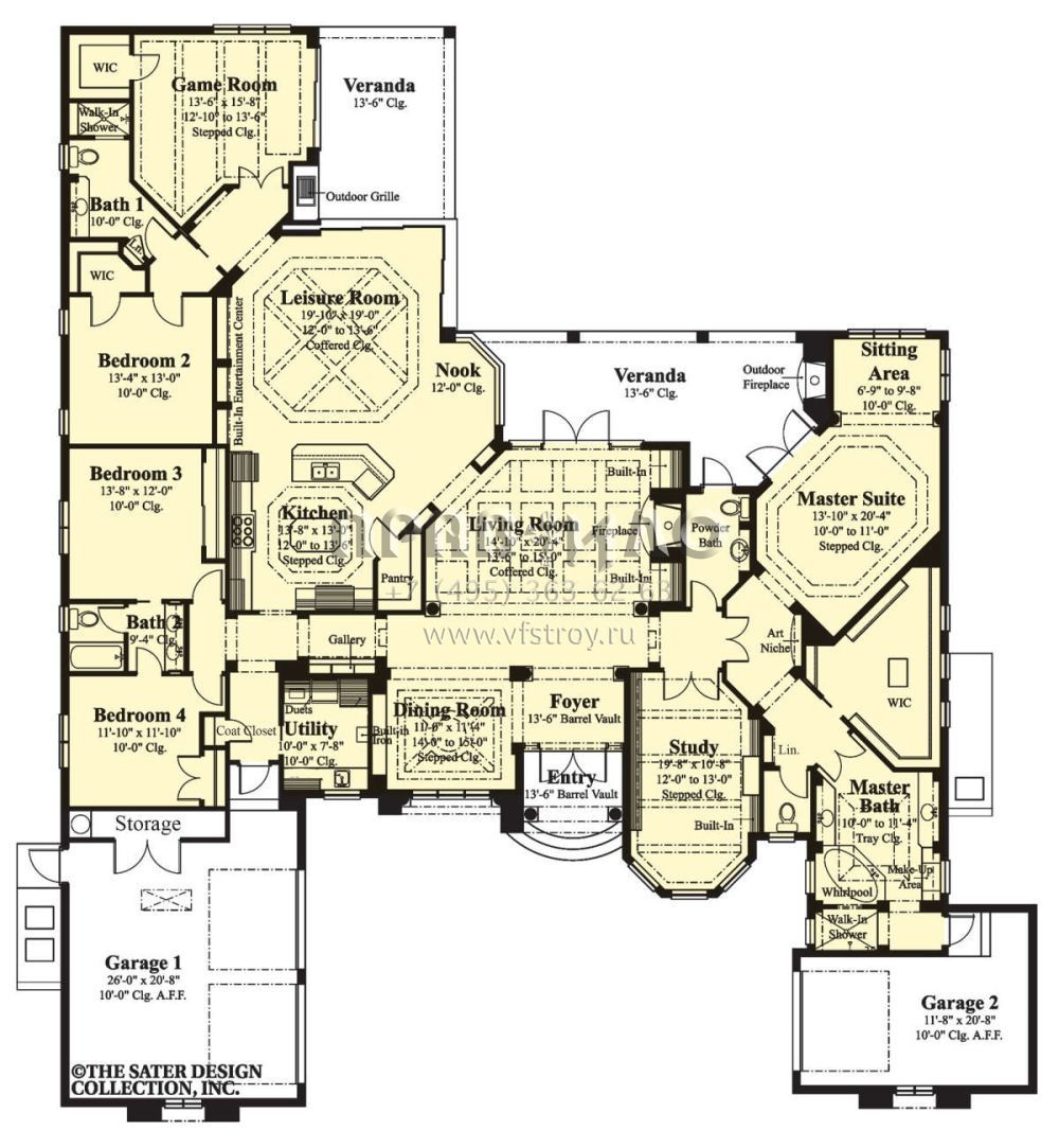 Проект одноэтажного дома с гаражом на три и более машин в прибрежном стиле S5-371 (8436-00026)