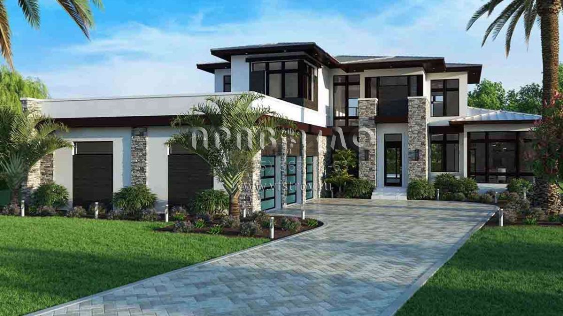 Проект двухэтажного дома с гаражом на три и более машин в современном стиле S5-372 (5565-00024)