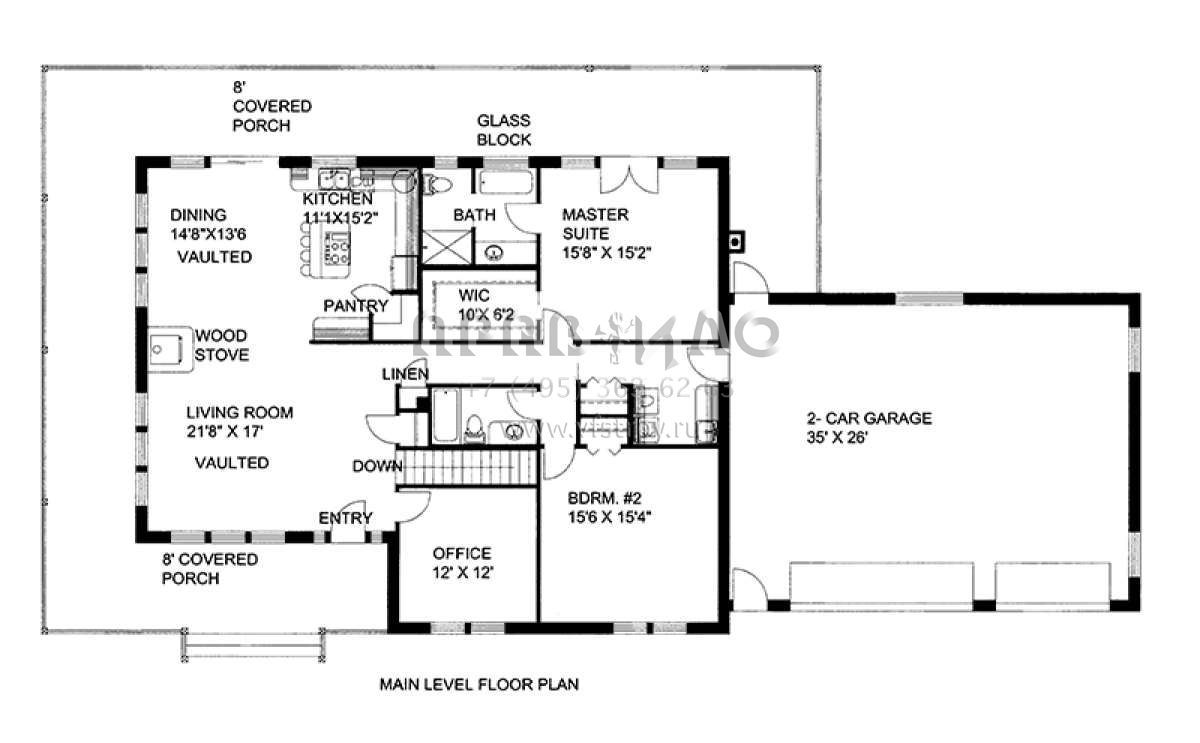 Проект одноэтажного дома с гаражом на две машины в стиле Ранчо S5-373 (039-00584)