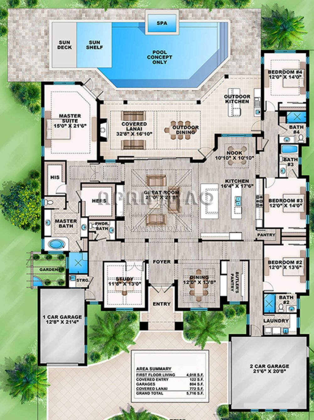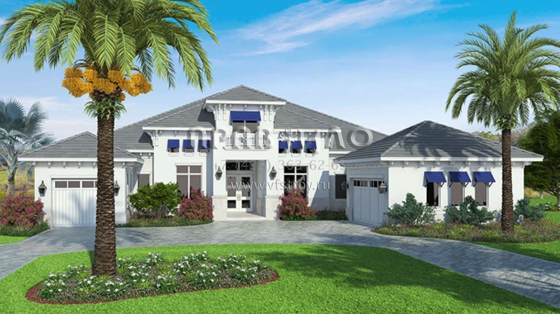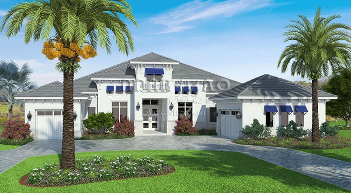 Проект одноэтажного дома с гаражом на три и более машин в прибрежном стиле S5-373 (207-00033)
