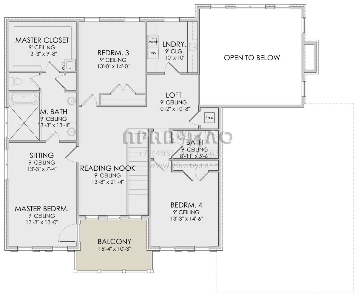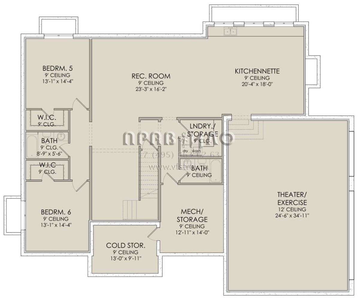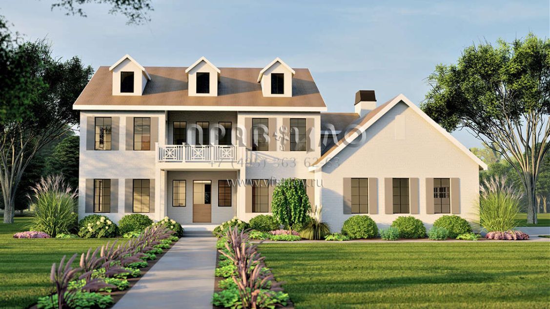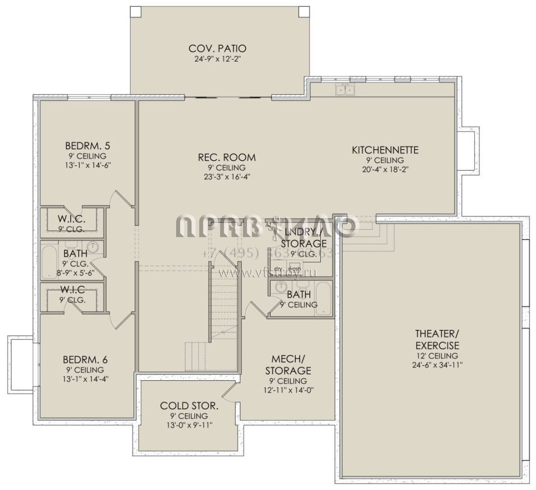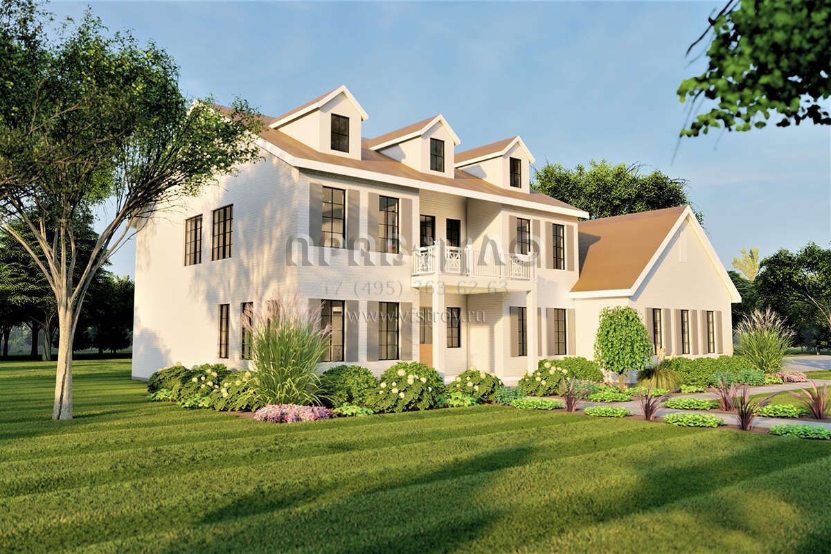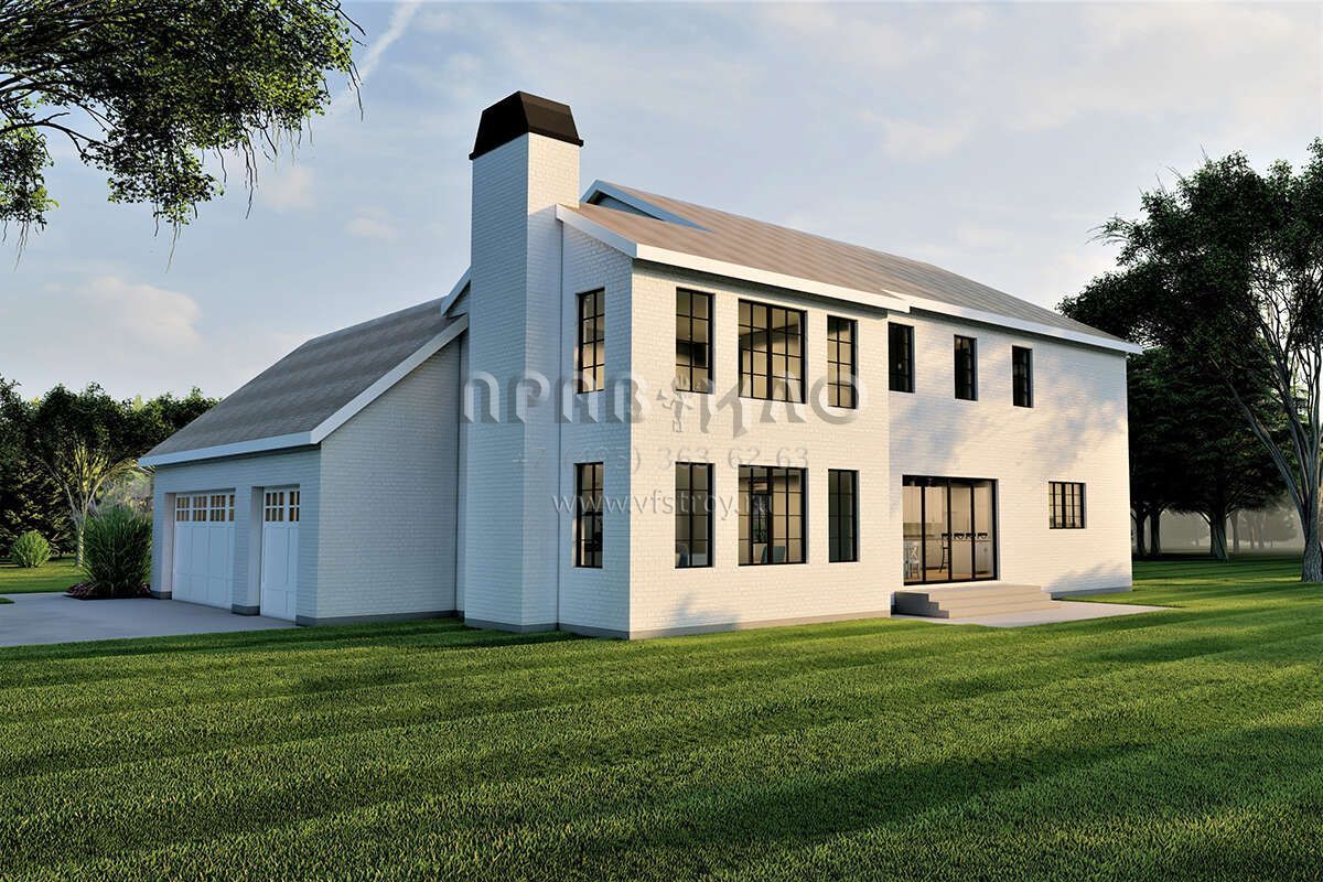 Проект двухэтажного дома с подвалом и гаражом на три машины в стиле Ранчо S5-373 (6422-00007)