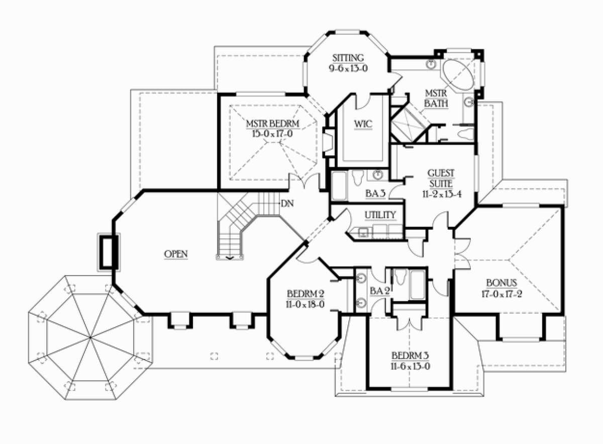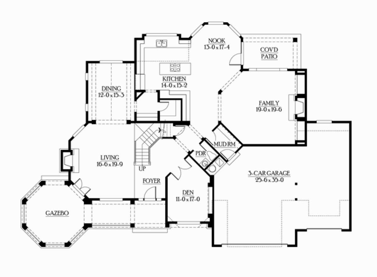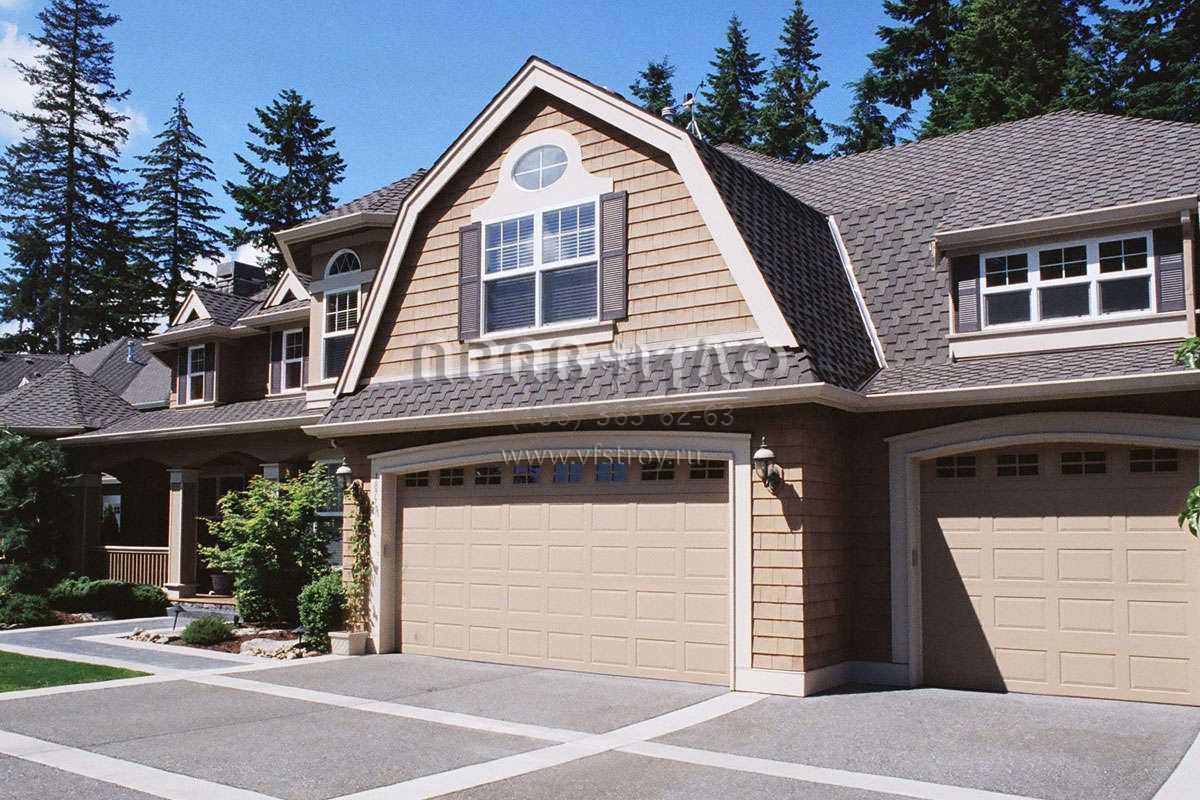 Это проект двухэтажного дома с гаражом на три и более машин жилой площадью 374 кв.м. Длина дома 17.7 м, ширина 25.9 м, высота 0 м. В доме четыре спальни и три санузла.