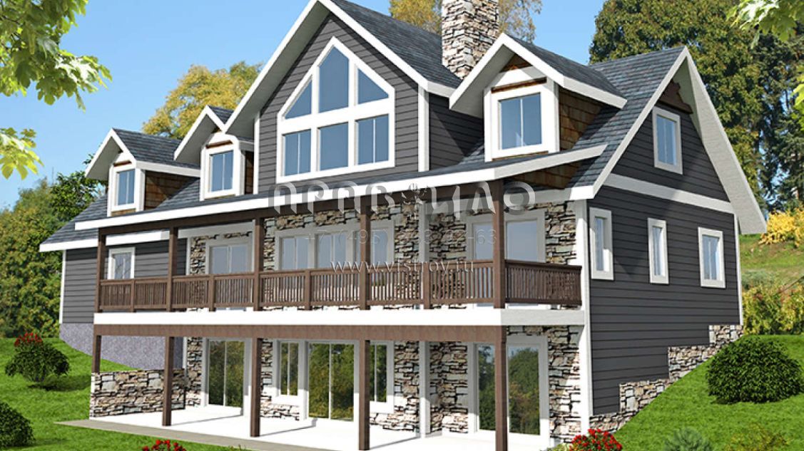 Проект двухэтажного дома с гаражом на две машины в стиле Шале S5-375 (039-00700)
