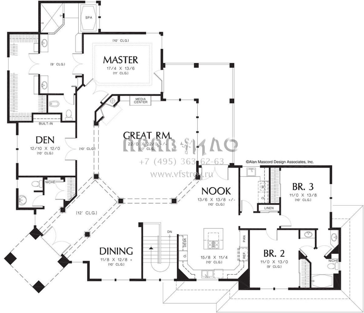 Поскольку этот проект разрабатывался иностранными архитекторами, для строительства дома требуется переработка проекта под действующие в России нормы. Данные визуализации проекта представлены для ознакомления с концепцией проекта. Проект разработан американским архитектурным бюро и представлен America's Best House Plans.