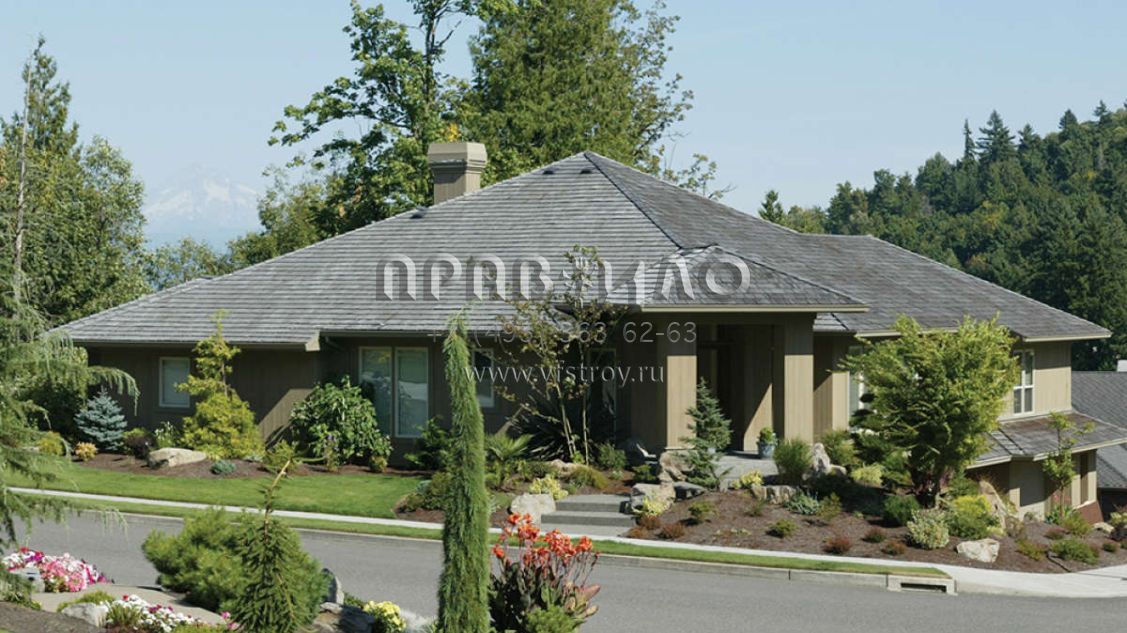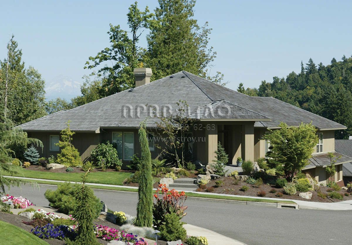 Большая площадь участка позволяет выбрать одноэтажный проект дома, особенно если в семье есть пожилые люди, инвалиды или маленькие дети.