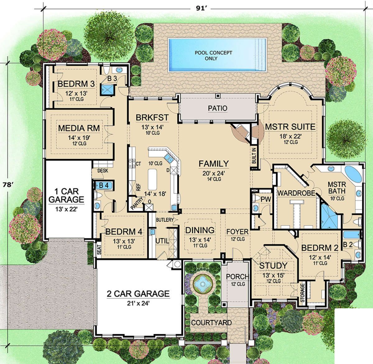 Проект особняка с гаражом на три машины в английском стиле S5-376 (5445-00323)