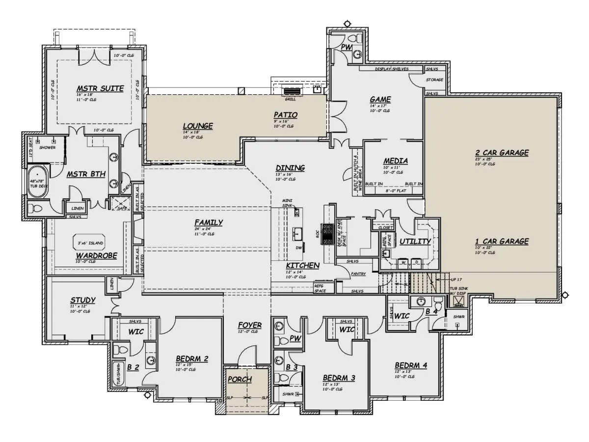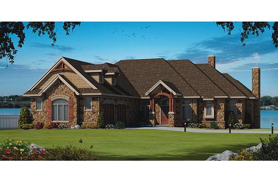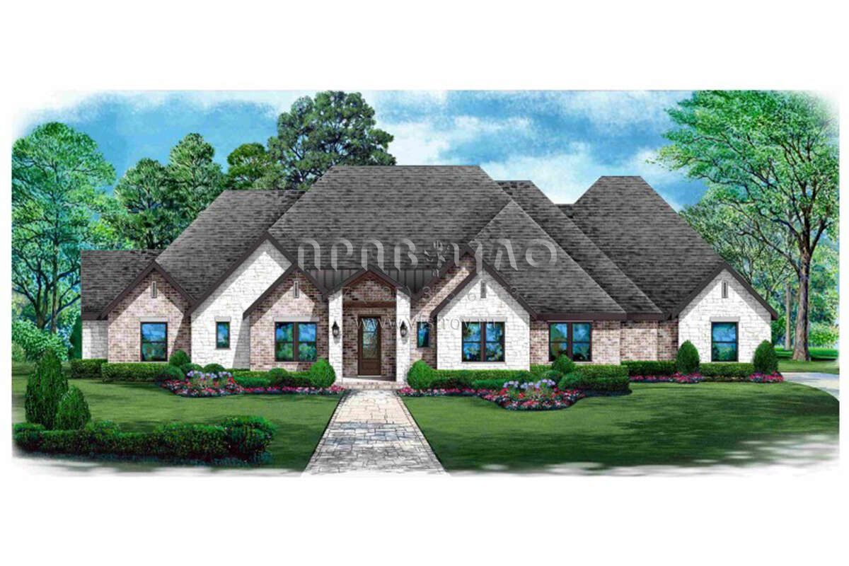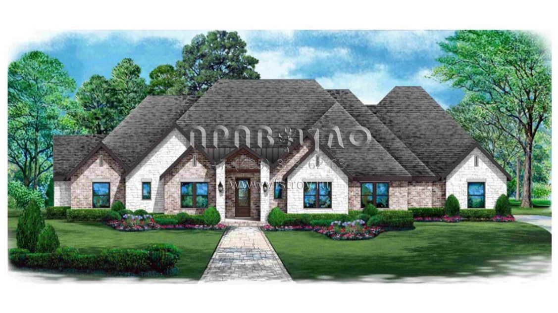Проект одноэтажного дома с гаражом на три и более машин в английском стиле S5-376 (5445-00474)