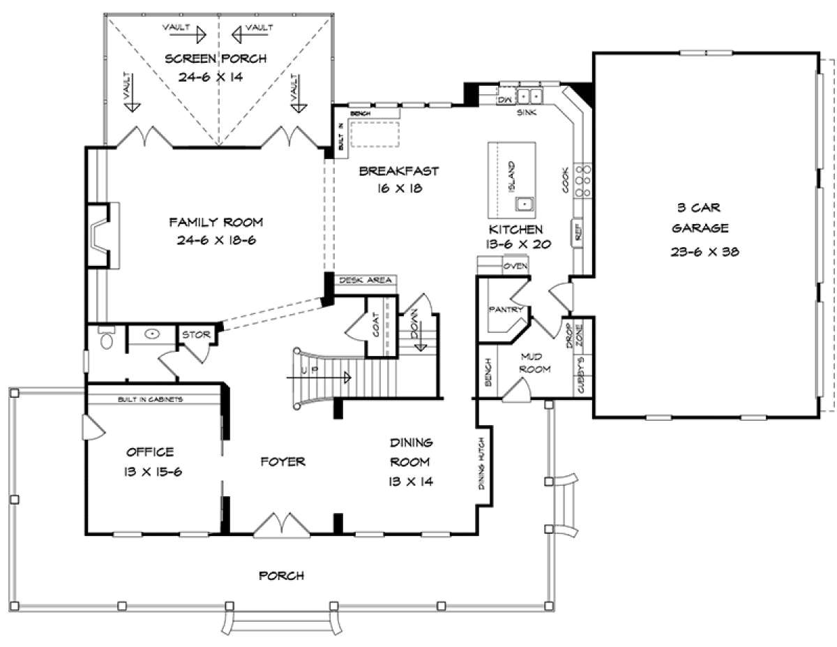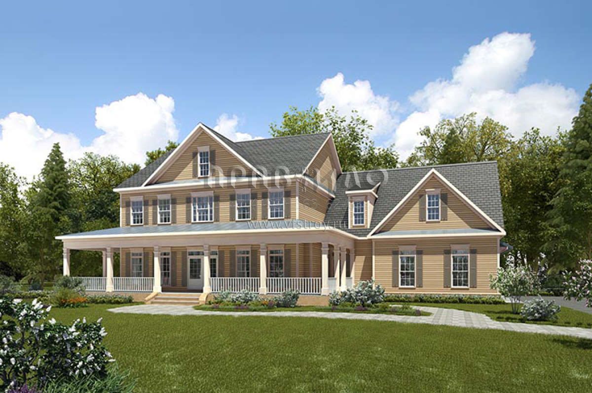 Проект двухэтажного дома с гаражом на три и более машин в стиле Ранчо S5-376 (6082-00037)