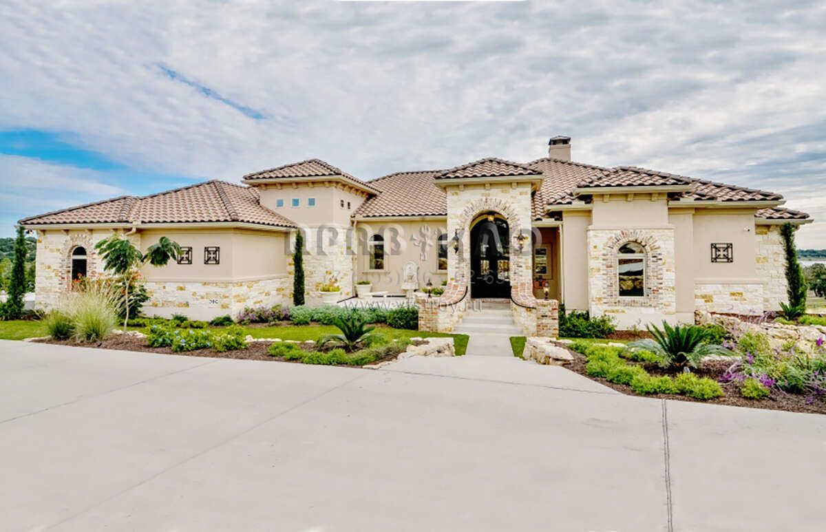 Это проект одноэтажного дома с гаражом на три и более машин жилой площадью 377 кв.м. Длина дома 19.2 м, ширина 29.6 м, высота 7 м. В доме четыре спальни и четыре санузла.
