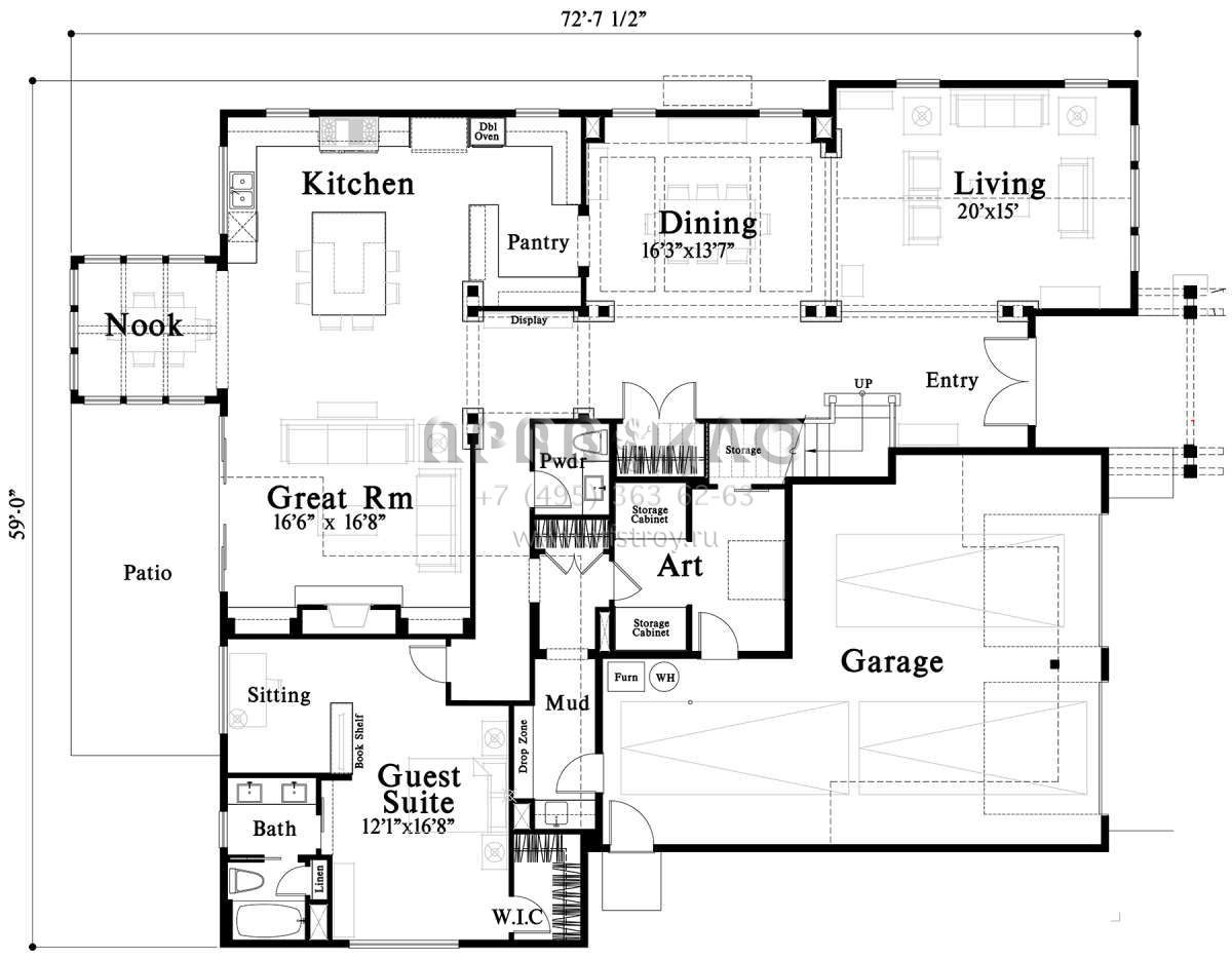 Проект двухэтажного дома с гаражом на две машины в американском стиле S5-378 (4771-00013)