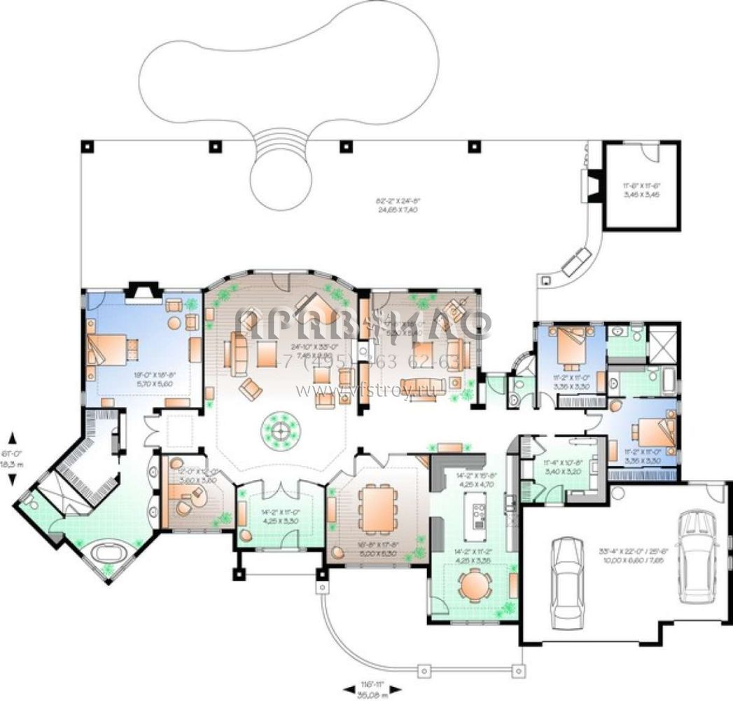 Проект одноэтажного дома с гаражом на две машины в английском стиле S5-379 (034-00662)