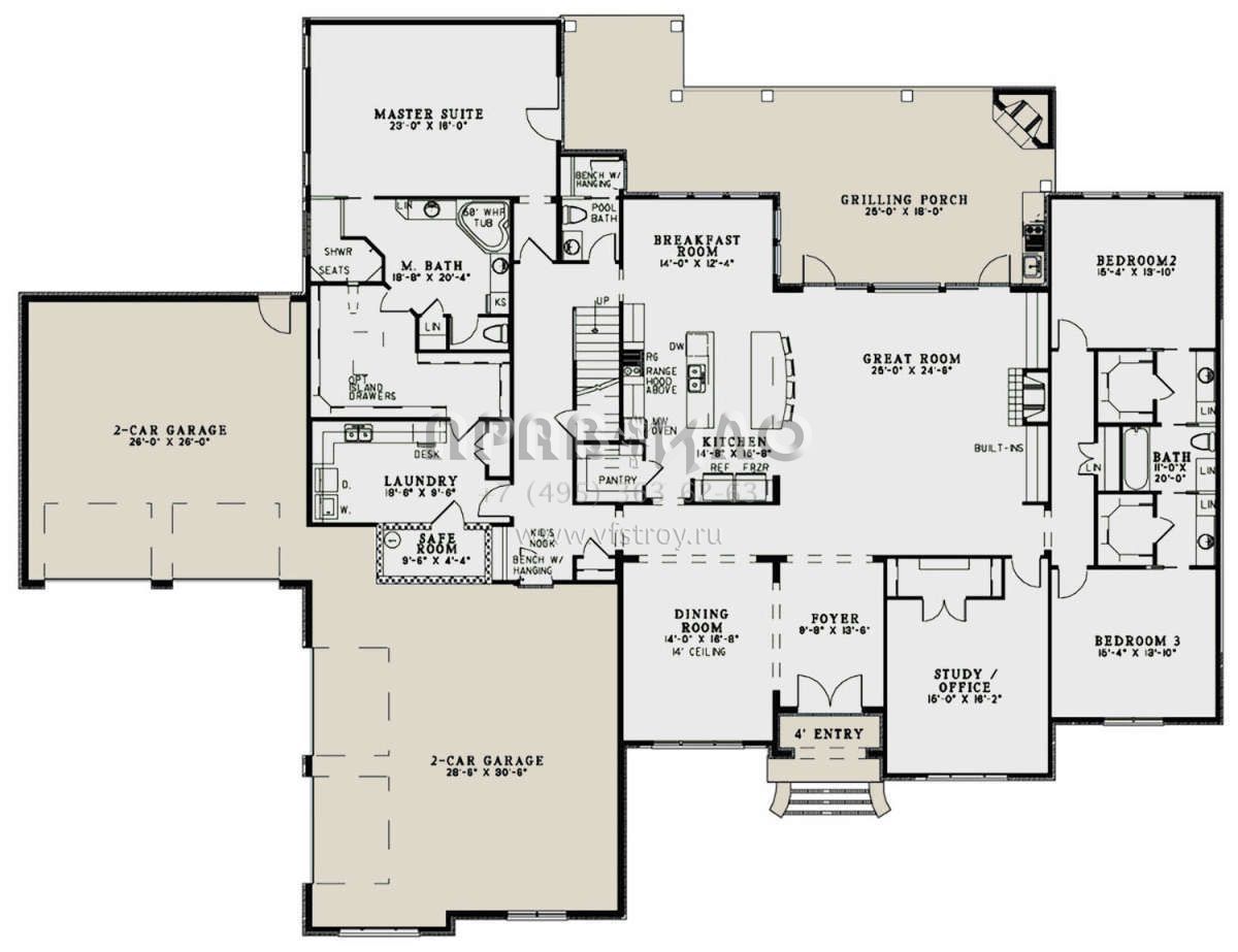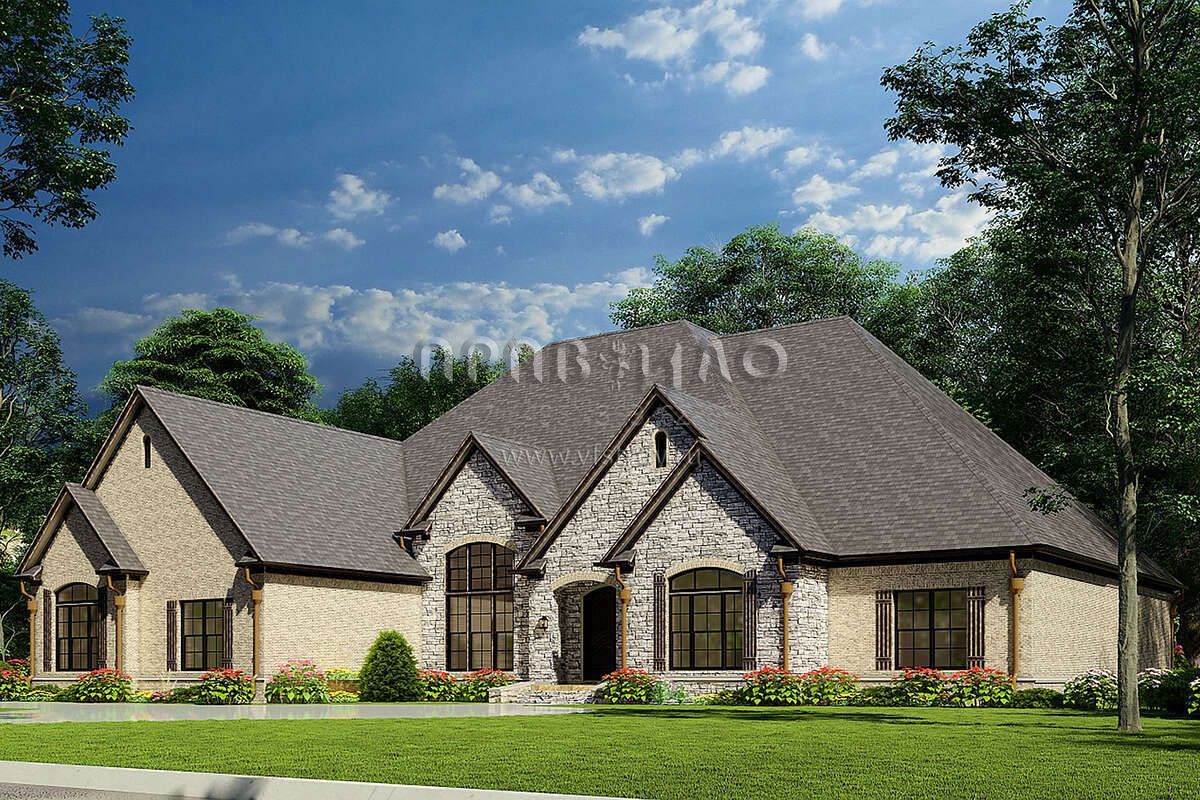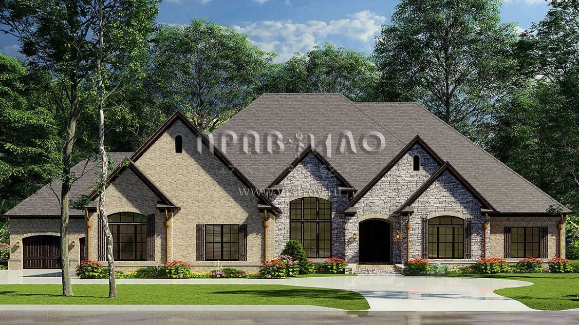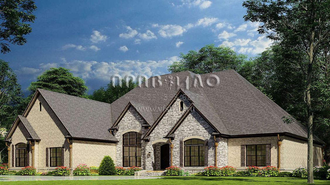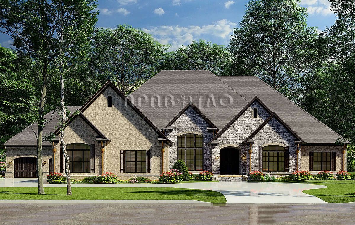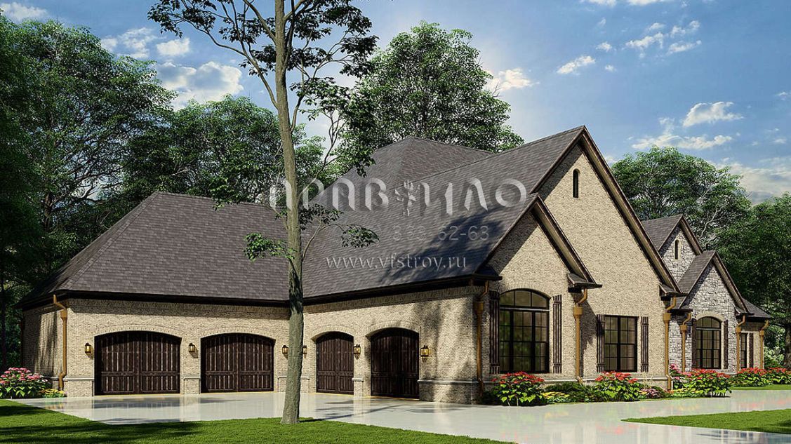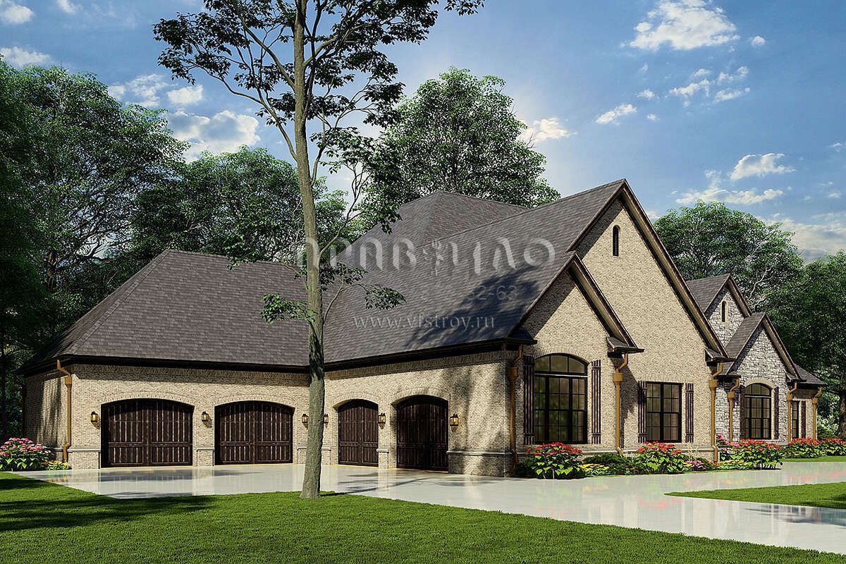 Проект одноэтажного дома с гаражом на три и более машин в английском стиле S5-379 (110-00989)