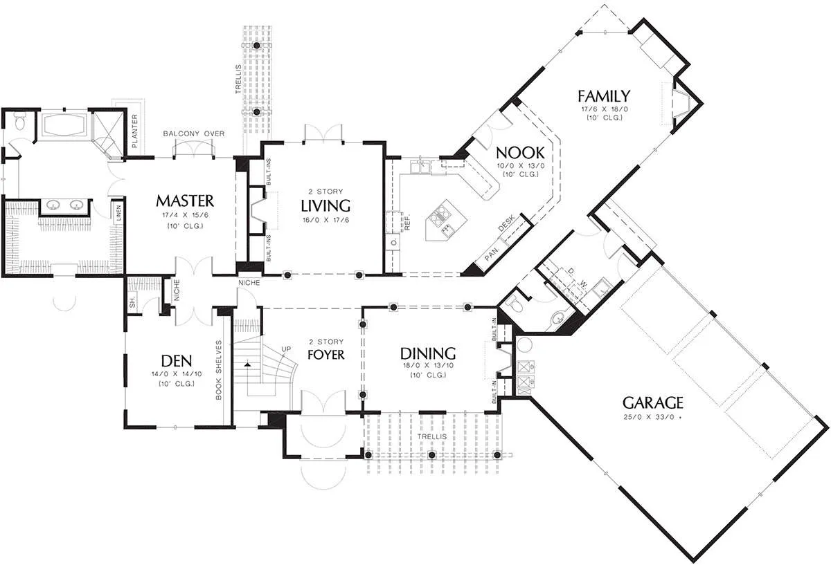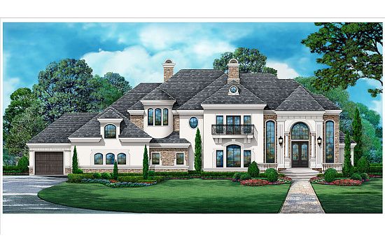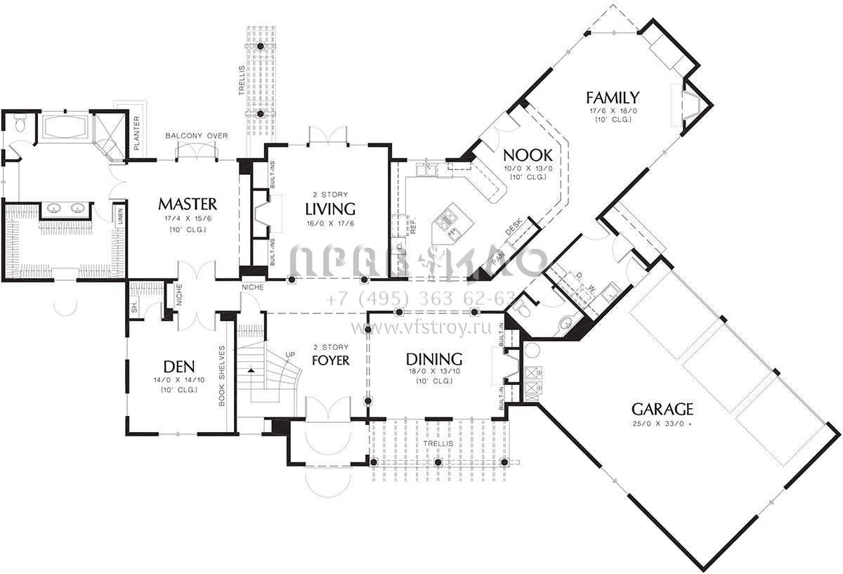Проект двухэтажного дома с гаражом на три и более машин в стиле Ранчо S5-379 (2559-00573)