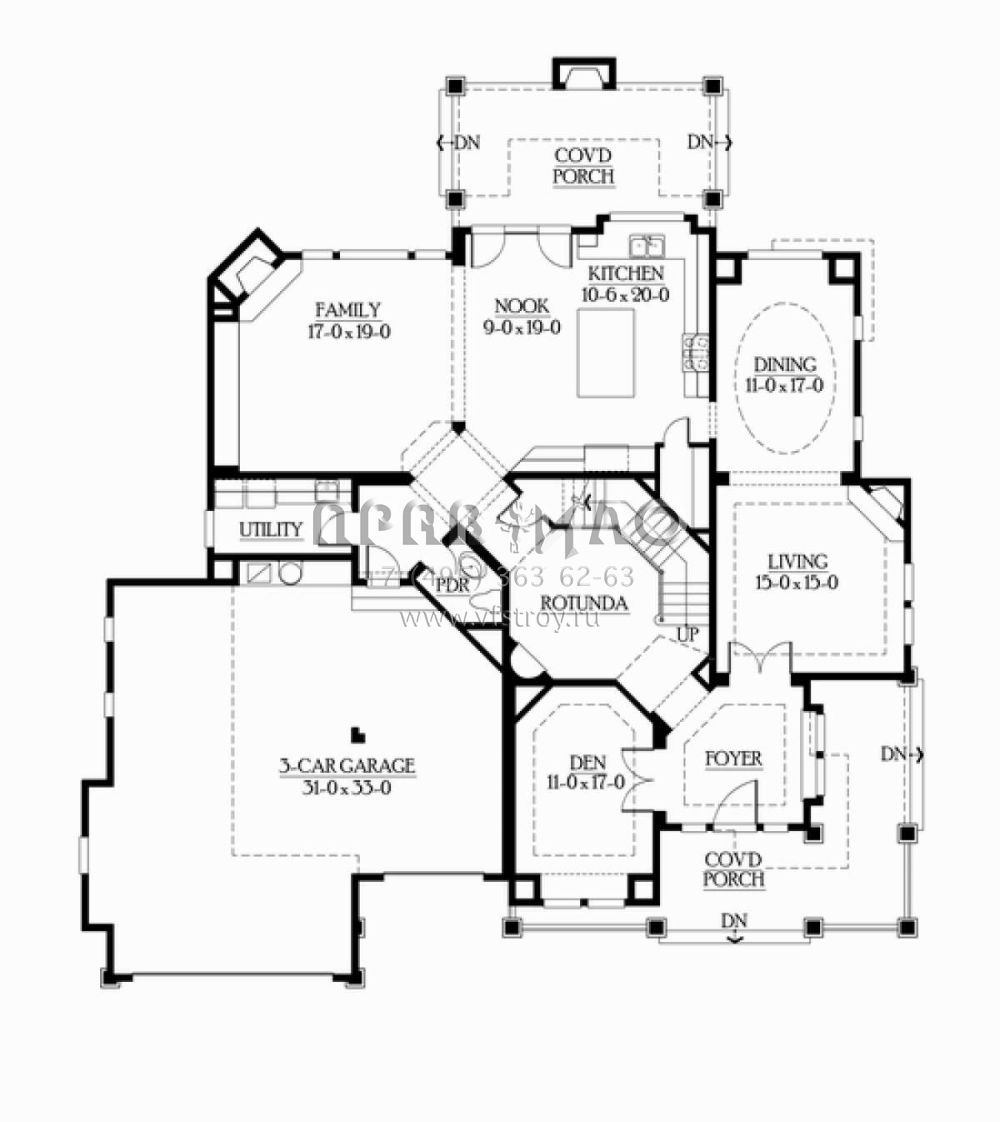 Проект двухэтажного дома с гаражом на три и более машин в скандинавском стиле S5-379 (341-00020)