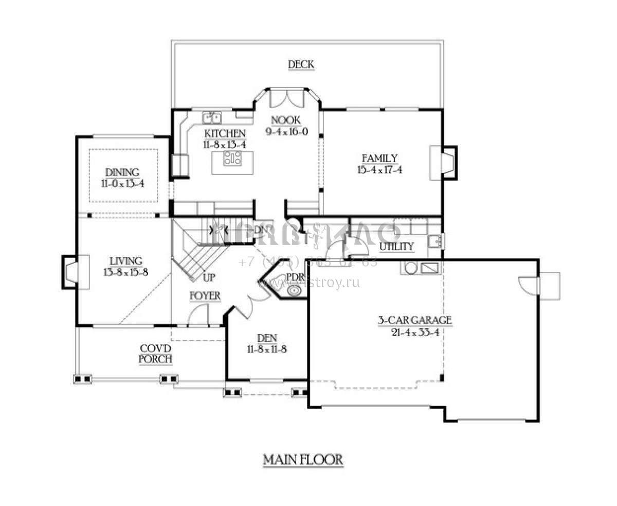 Проект двухэтажного дома с гаражом на три и более машин в американском стиле S5-379 (341-00221)