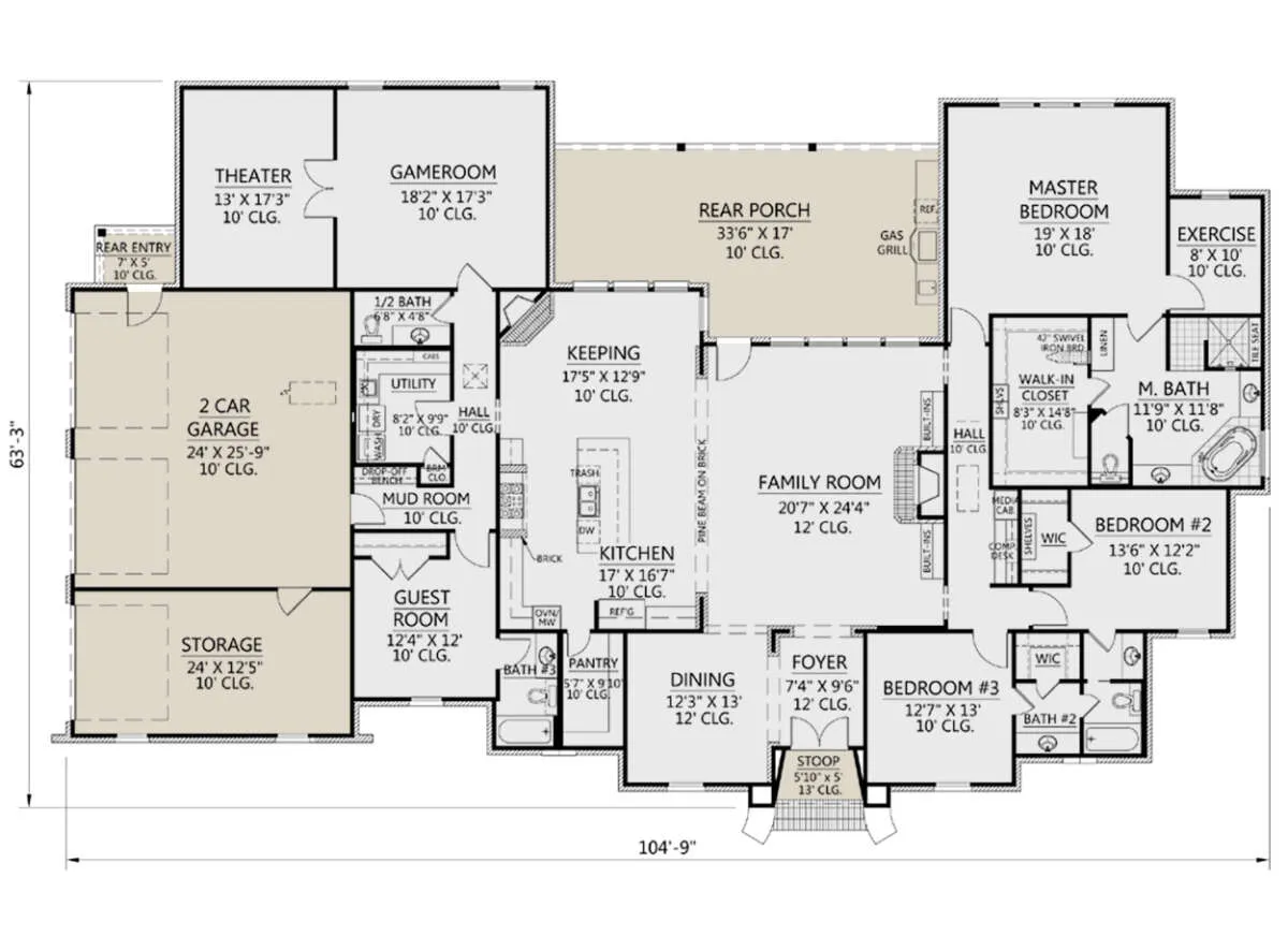 Проект одноэтажного дома с гаражом на три и более машин в стиле Ранчо S5-379 (4534-00024)