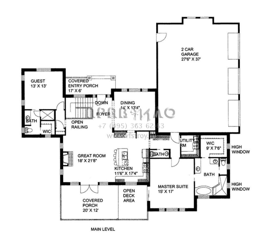 Проект одноэтажного дома с гаражом на три и более машин в американском стиле S5-380 (039-00565)