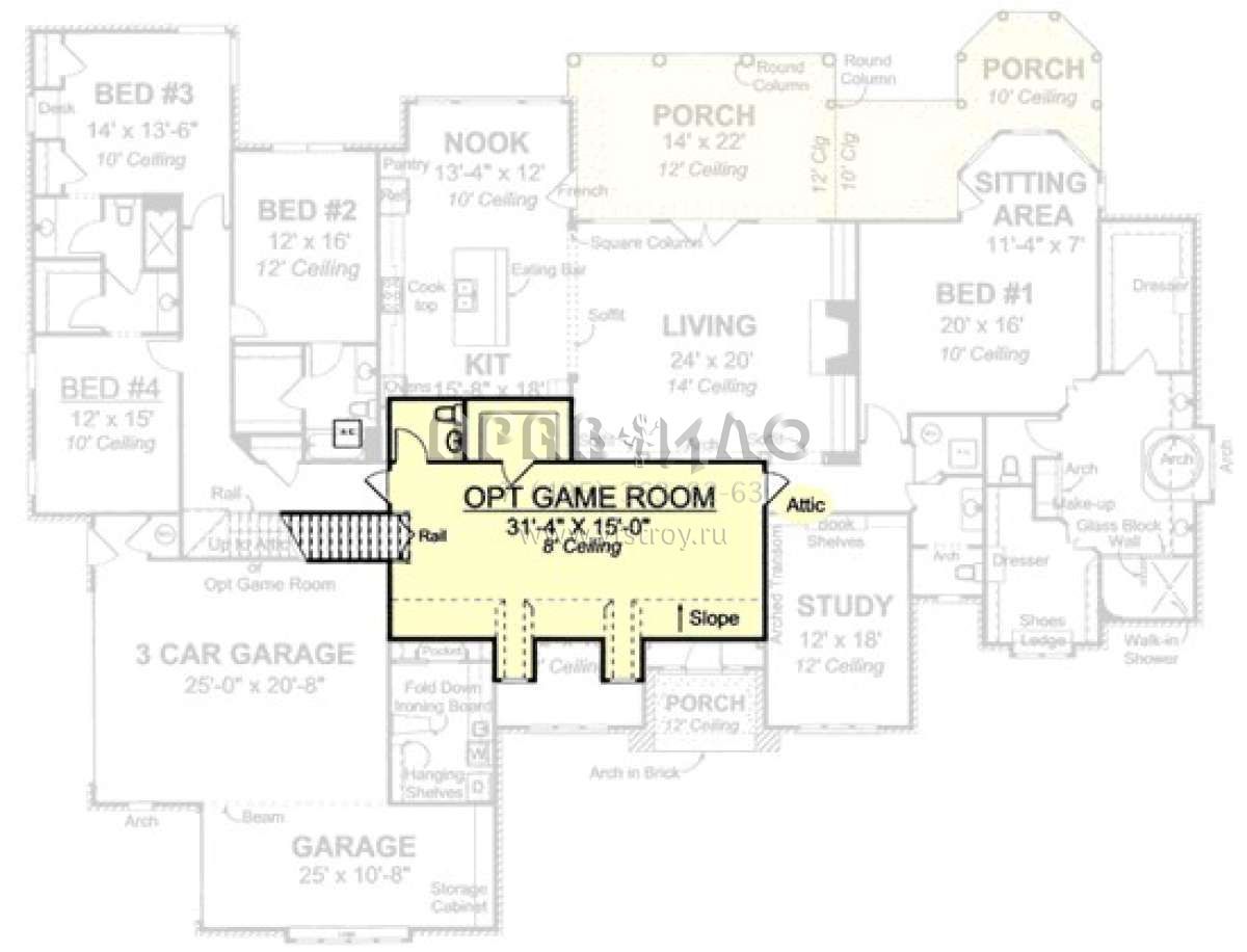 Проект одноэтажного дома с гаражом на три и более машин в стиле Ранчо S5-380 (4848-00138)